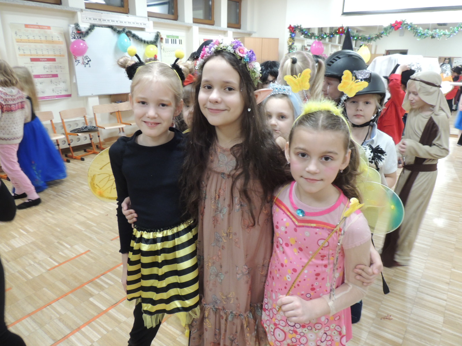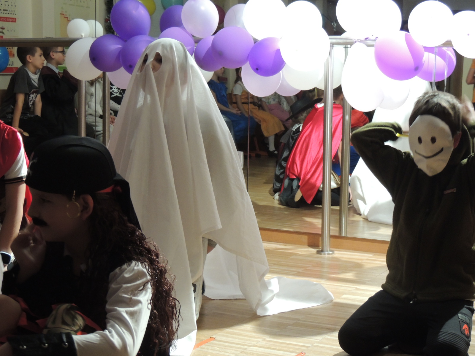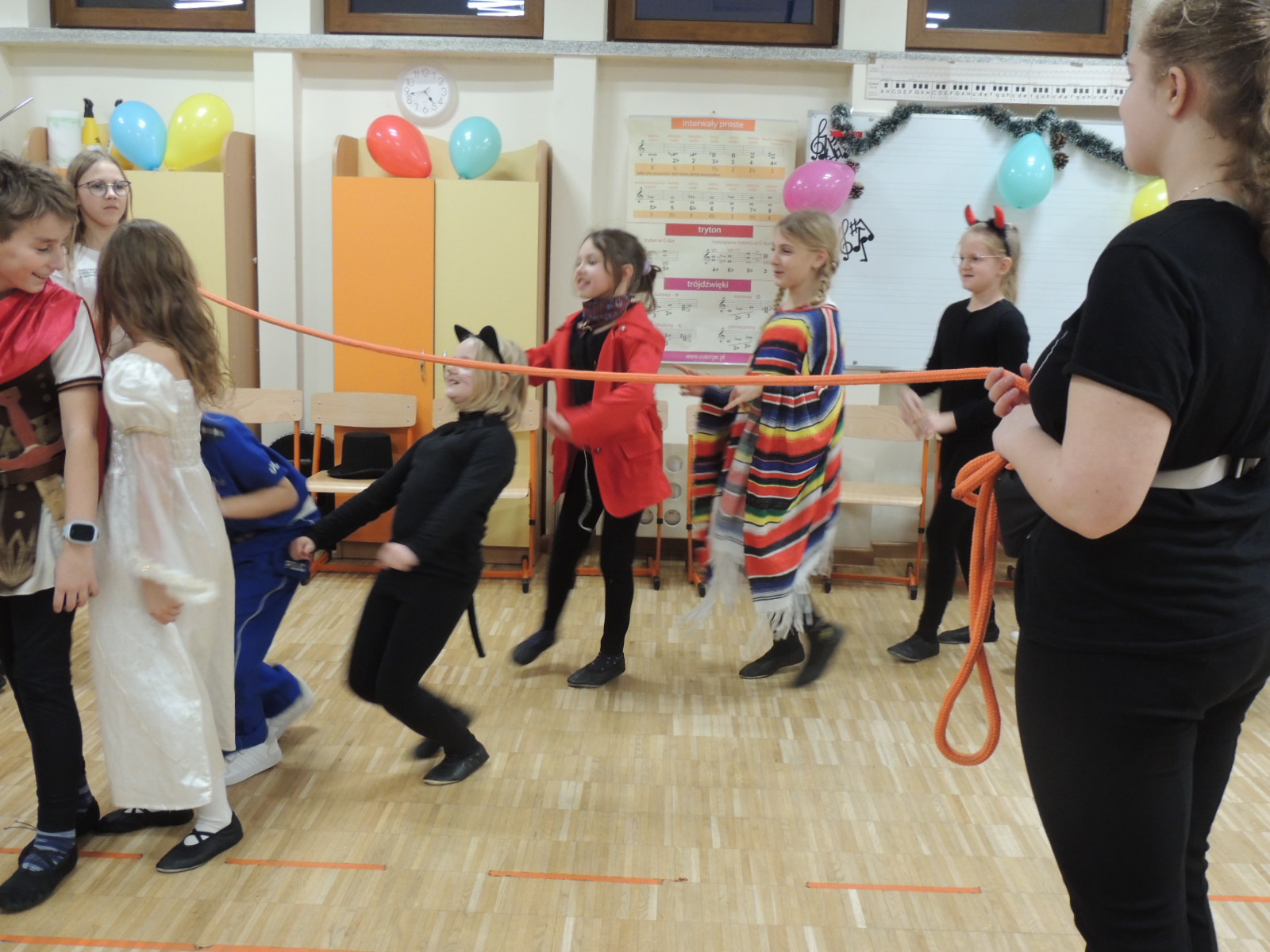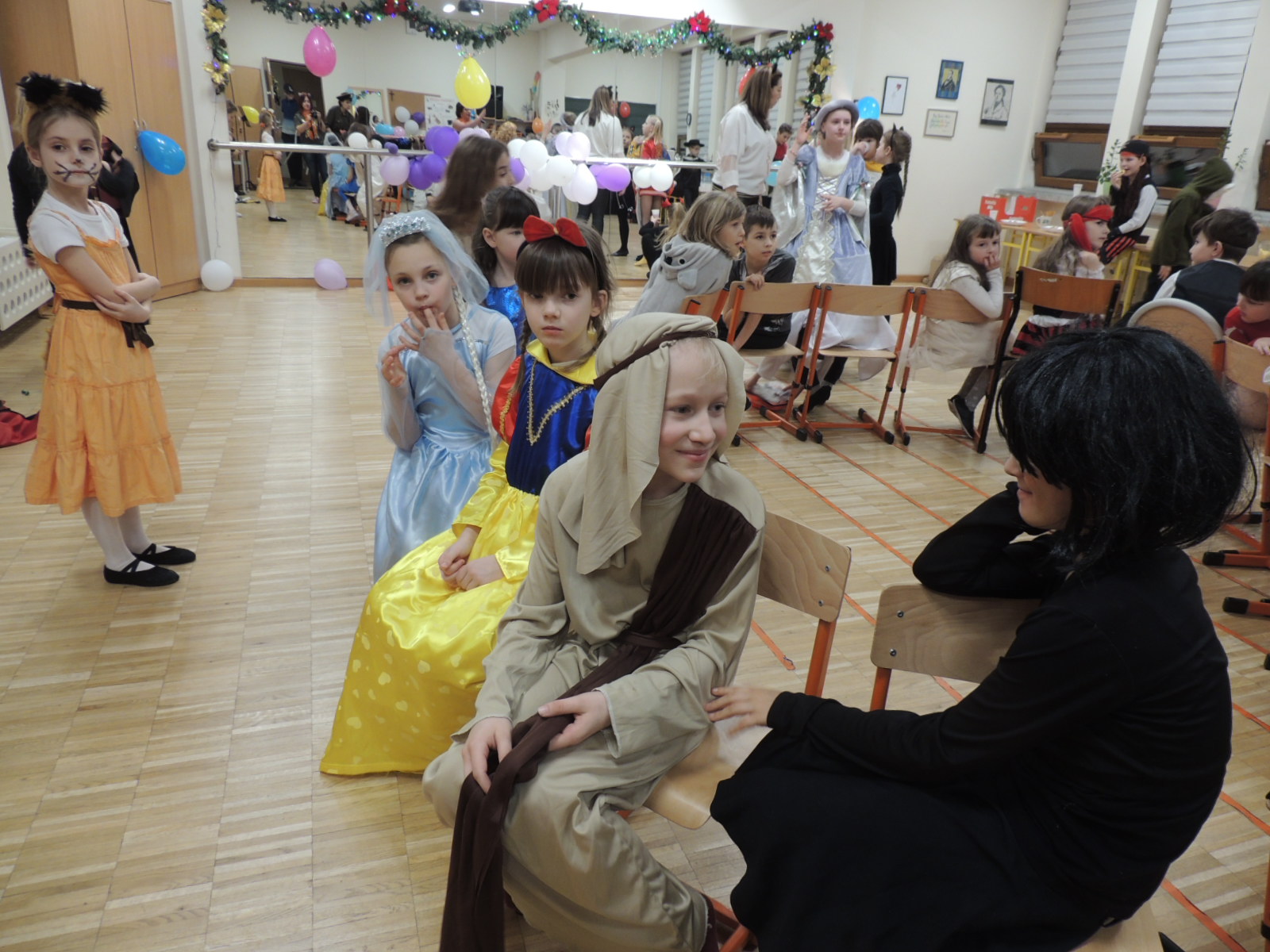 Oj działo się, działo! 12 stycznia zawitali do naszej szkoły niezwykli goście, kogo tam nie było...postacie z bajek, z filmów, ze świata zwierząt, duchów, a nawet przedstawiciele służby zdrowia :). Już przed godziną 16:00 na korytarzach szkoły zrobiło się gwarno i kolorowo, a od 16:00 zaczęła się zabawa. Tańców, zabaw, śmiechu nikt nie zliczy, bawił się kotek z królewną, rycerz z doktorem, Hermiona z duchem. Utrudzeni tańcem goście zasiadali do smacznych przekąsek i napojów, których rodzajów było co niemiara. Panie: Basia - główny wodzirej, Ewelina - szlachetna piratka, Gabrysia - wesoły kotek, Asia - rudy kotek oraz pan Piotr - czarodziej klawiatury nadawali tempo i rytm zabawie. Kolejny taki bal w przyszłym roku w karnawale, zapiszcie w terminarzach, takiego wydarzenia nie można przegapić. Do zobaczenia!