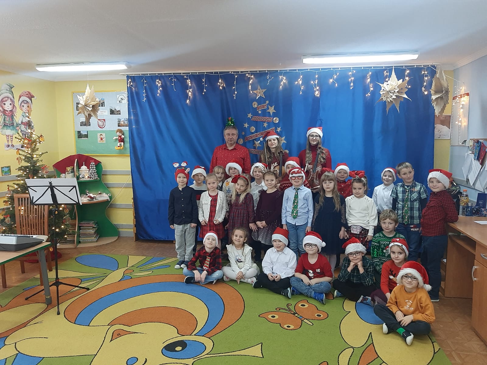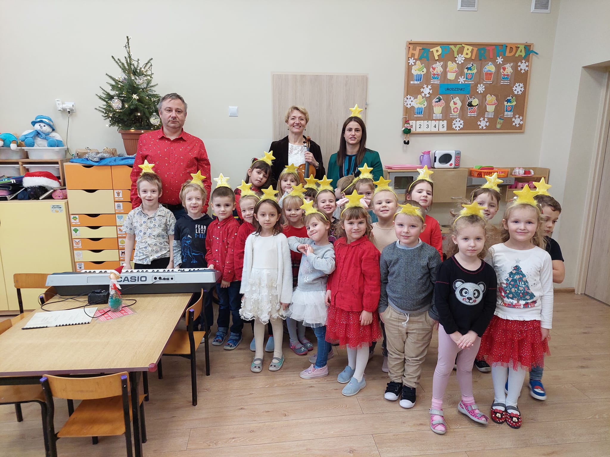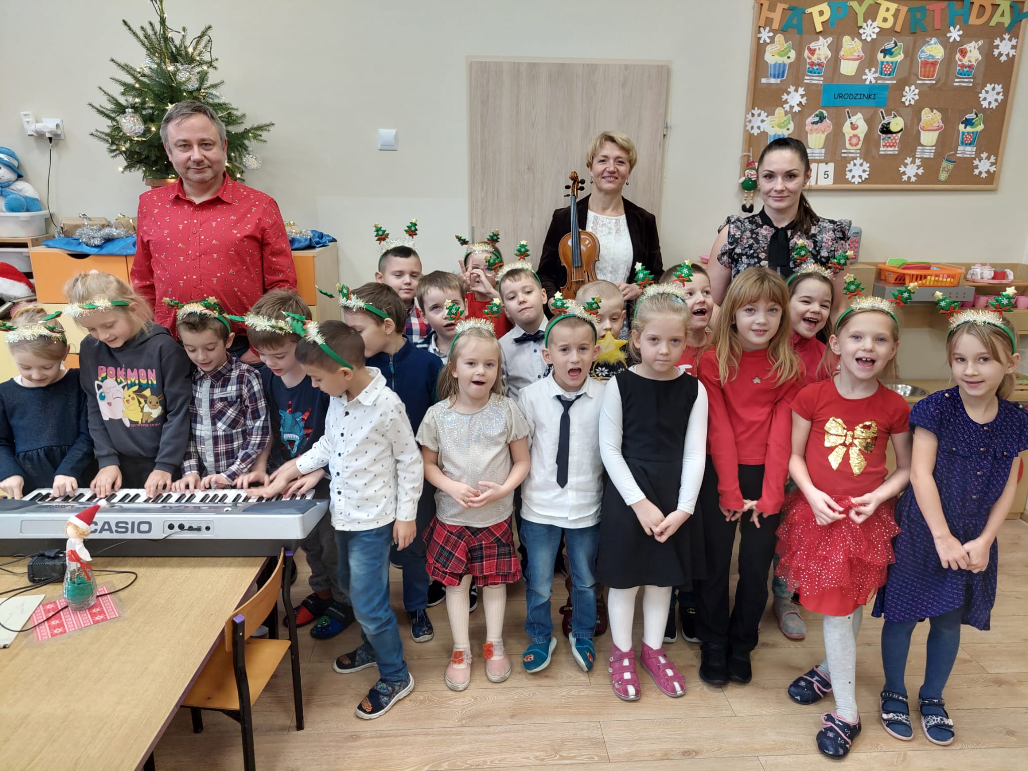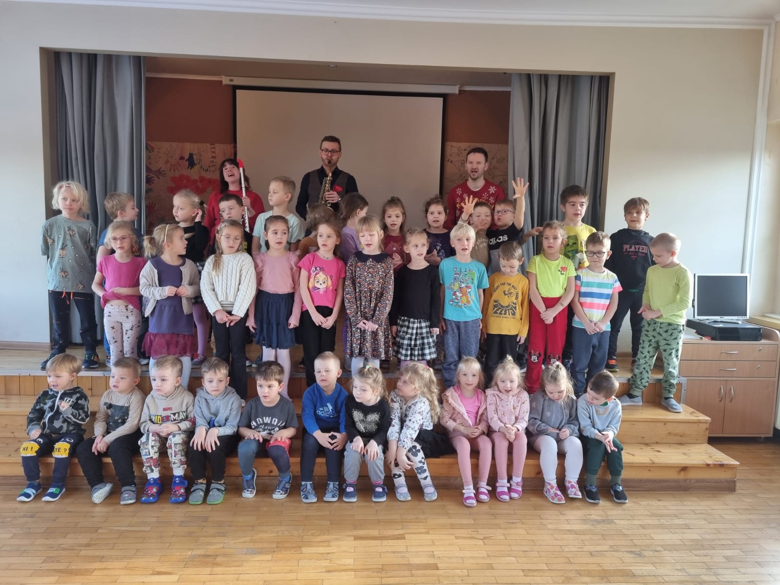 Podobnie jak w ubiegłym roku, nauczyciele Państwowej Szkoły Muzycznej I st. im. Stanisława Moniuszki w Raciborzu, w dn. 11-15 grudnia 2023 roku odwiedzili przedszkola w naszym mieście i regionie nr: 10, 2, 20, 26, 14, 4, 12, 11, 23, 13, 24, 9, 15, przedszkole w Nędzy oraz przedszkole "Świat Malucha". W świątecznym nastroju dokonali nagrań kolęd: "Przybieżeli do Betlejem" i "Dzisiaj w Betlejem" przygotowanych przez wytypowane w przedszkolach grupy. Zadowolone i uśmiechnięte buzie maluchów udzieliły się wszystkim...zobaczcie sami w galerii:)