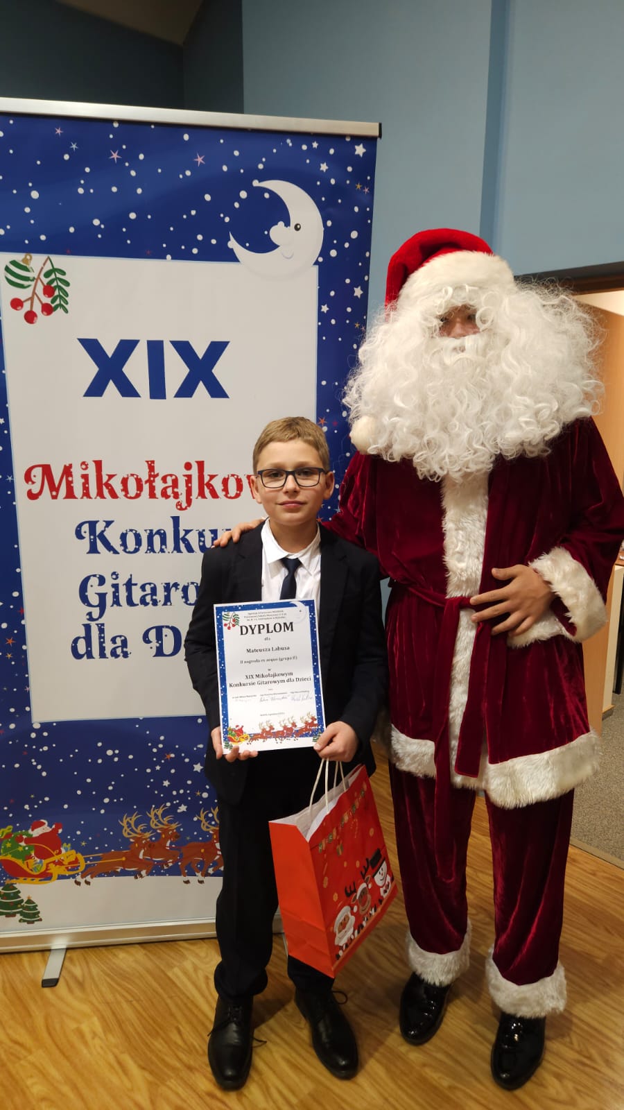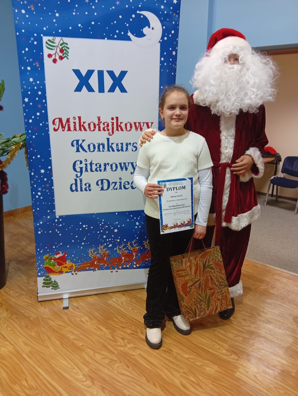 Milena Kozieł z klasy II C6 zdobyła 3 miejsce, a Mateusz Labus z klasy V C6 zdobył 2 miejsce podczas XIX Mikołajkowego Konkursu Gitarowego dla Dzieci w Rybniku, który odbył sie 6 grudnia 2025r.