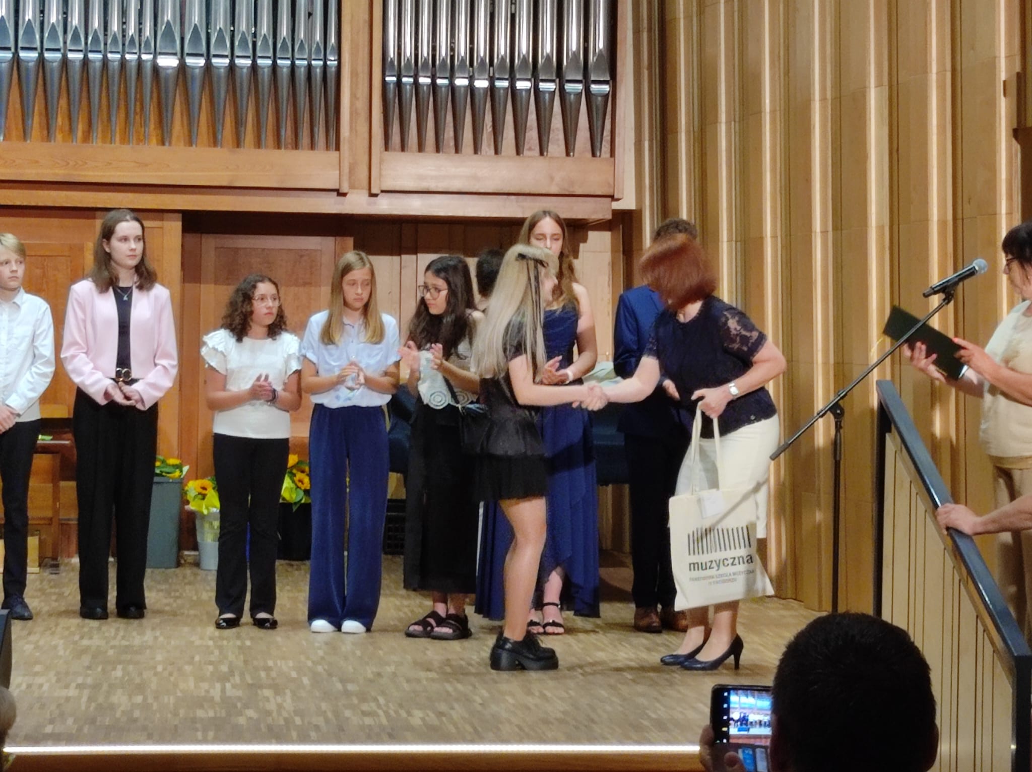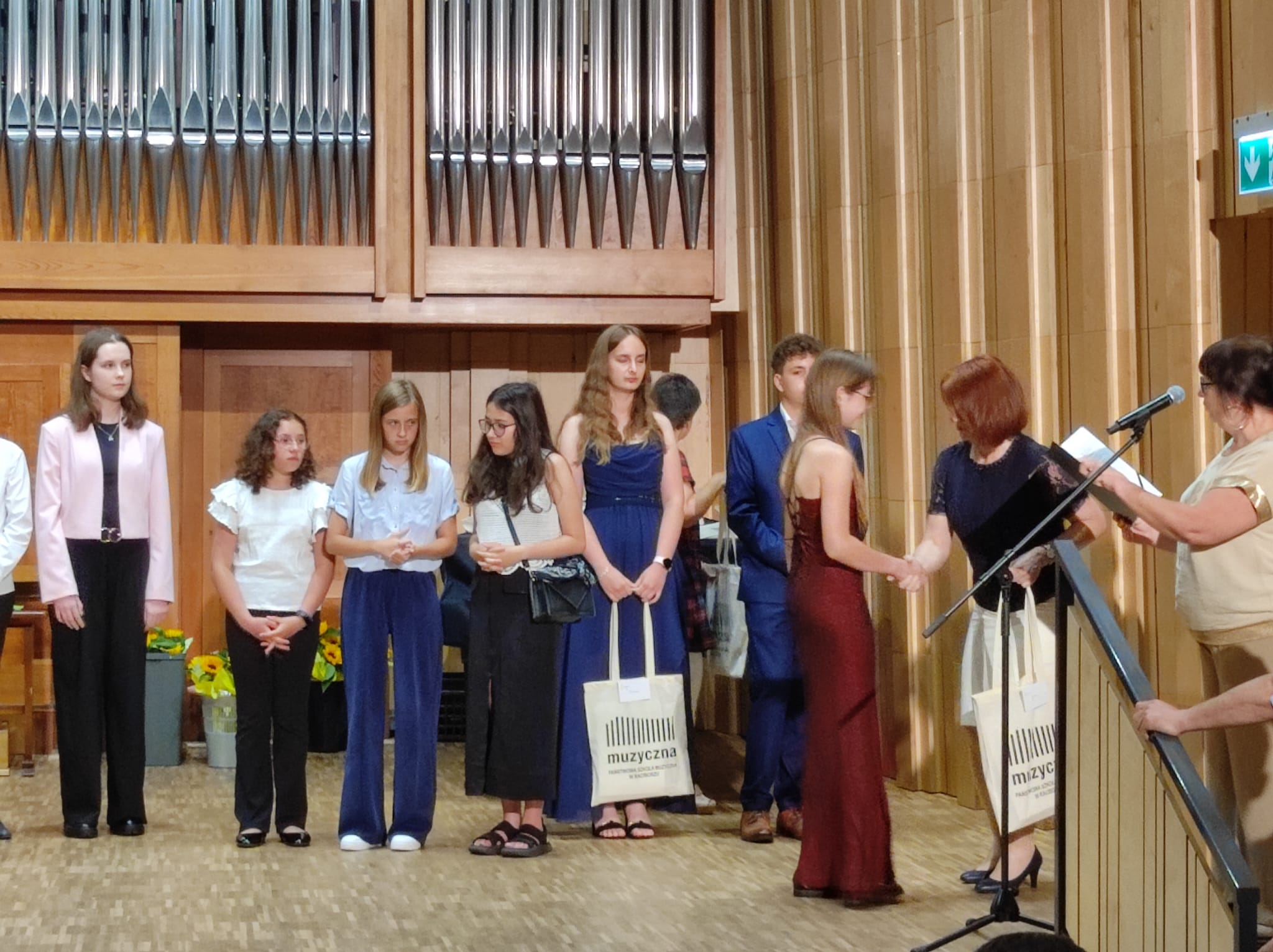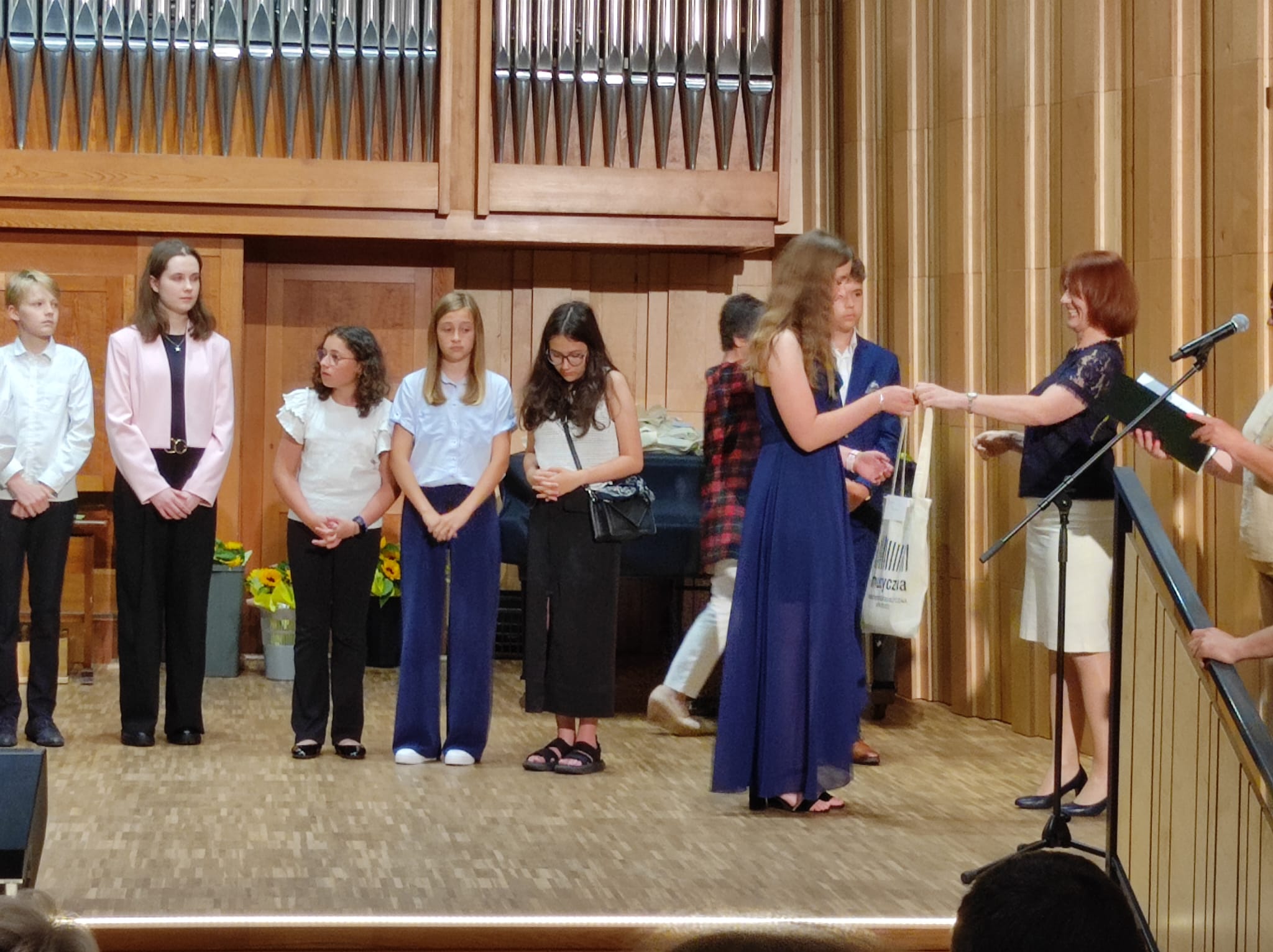 część artystyczną – występy absolwentów oraz część oficjalną, gdzie p. dyrektor Anna Mucha wręczyła wszystkim absolwentom nagrody i pamiątki.