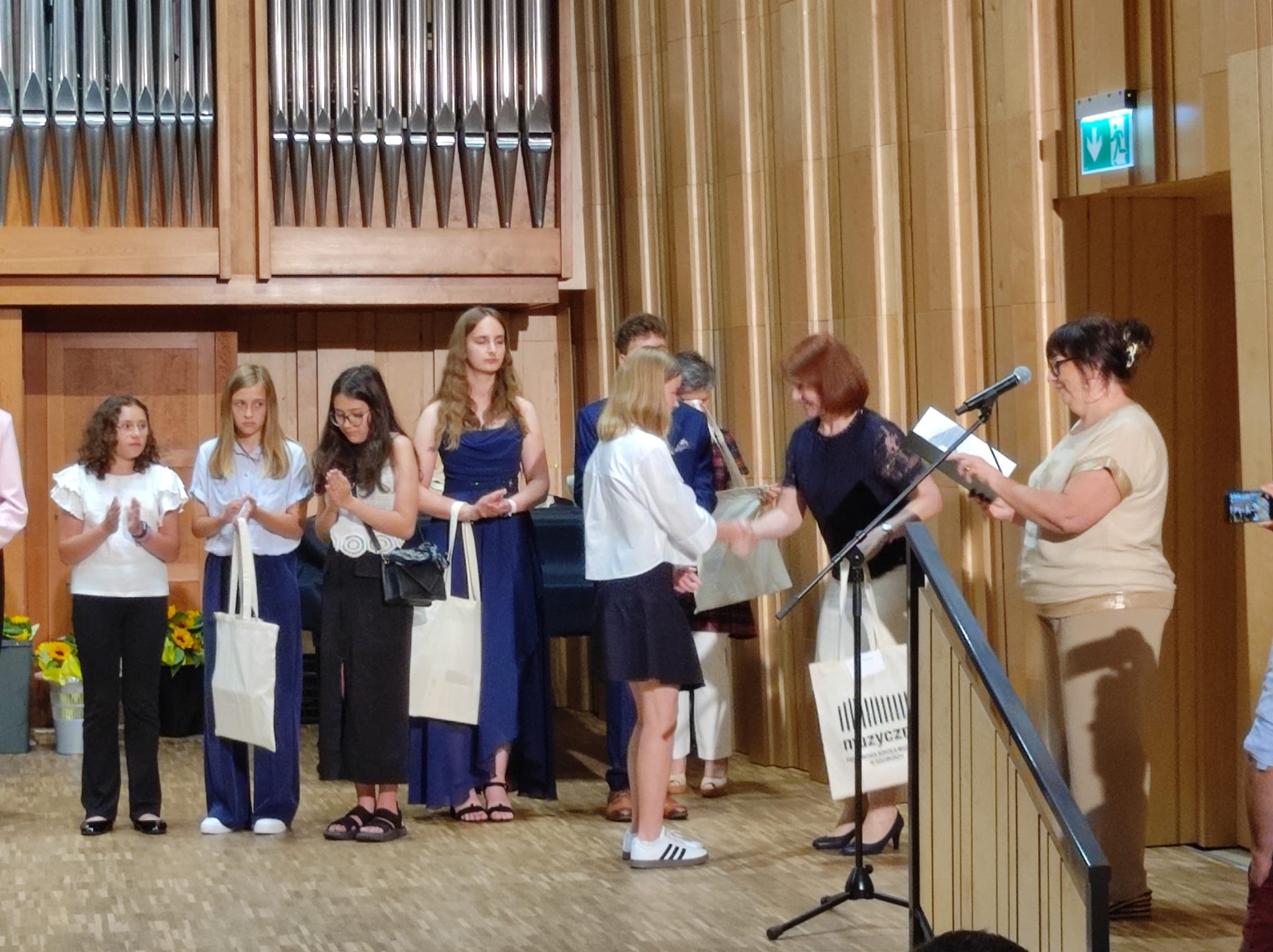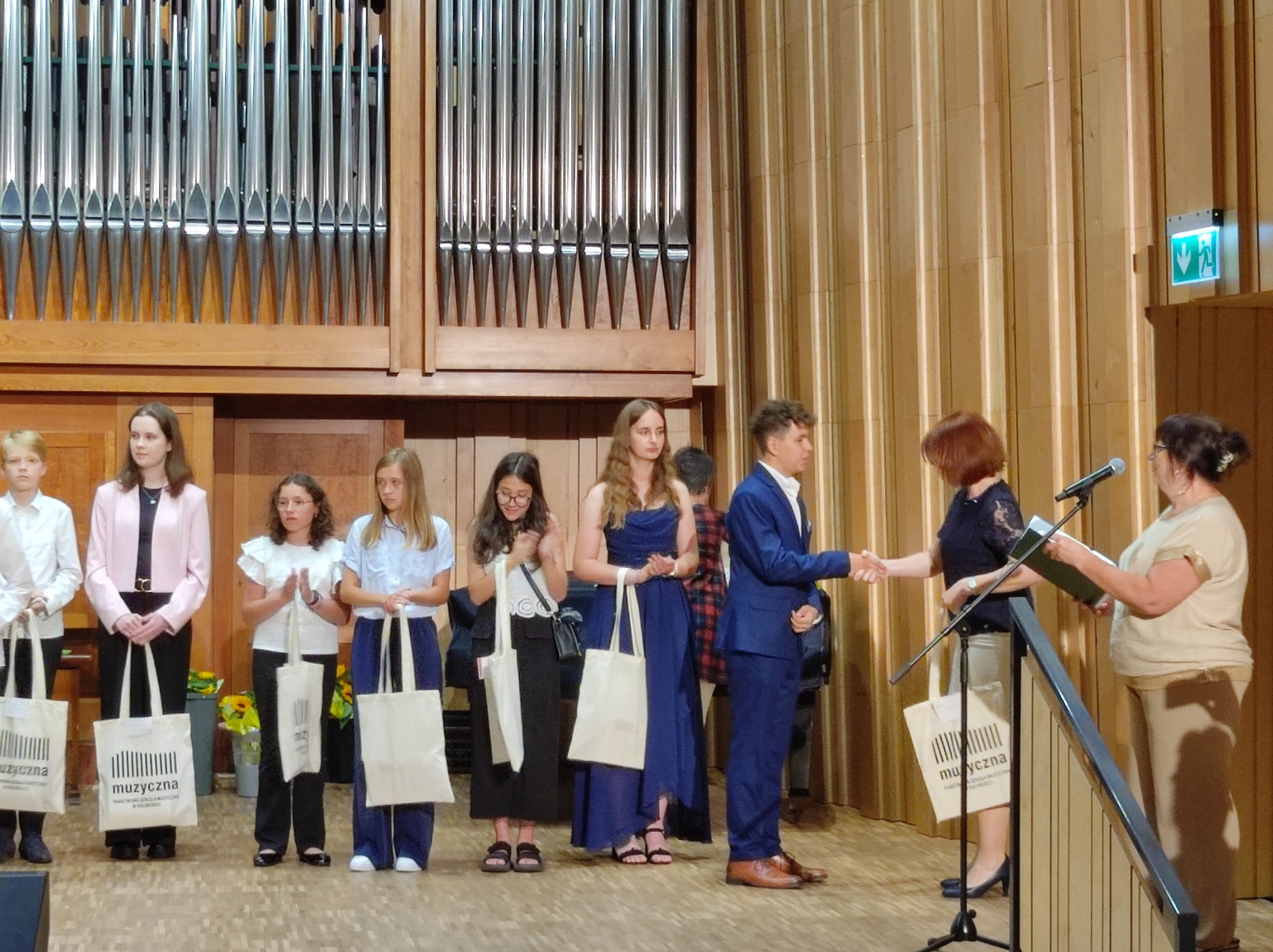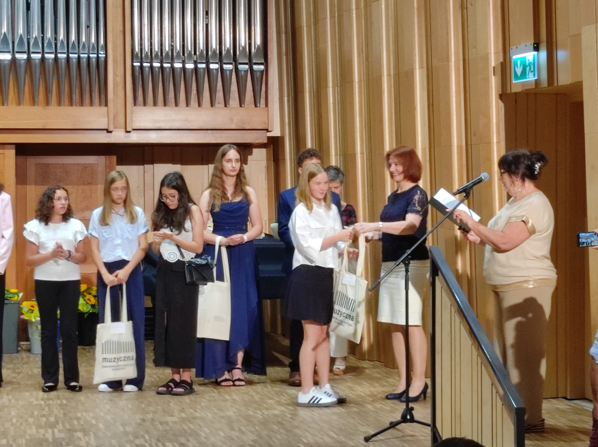 część artystyczną – występy absolwentów oraz część oficjalną, gdzie p. dyrektor Anna Mucha wręczyła wszystkim absolwentom nagrody i pamiątki.