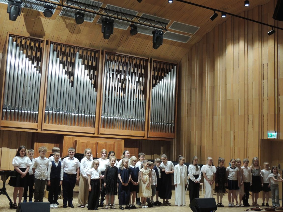 Koncert klas pierwszych, który odbył się 4 czerwca 2025 r., zgromadził w sali koncertowej liczną publiczność. To ważne wydarzenie dla wszystkich pierwszoklasistów i ich rodziców, które podsumowuje ich pierwszy rok nauki w szkole muzycznej. W styczniu jeszcze wystraszeni i niepewni, a dzisiaj odważnie zaprezentowali to czego nauczyli się w tym pierwszym roku nauki. Młodsi uczniowie aż się rwali do grania. Miło było popatrzeć na ich uśmiechnięte twarze i wypracowane ukłony. Ci starsi już trochę poważniej, bo wiek nie pozwala na wbieganie na scenę, ale też z wielka radością prezentowali swoje utwory.