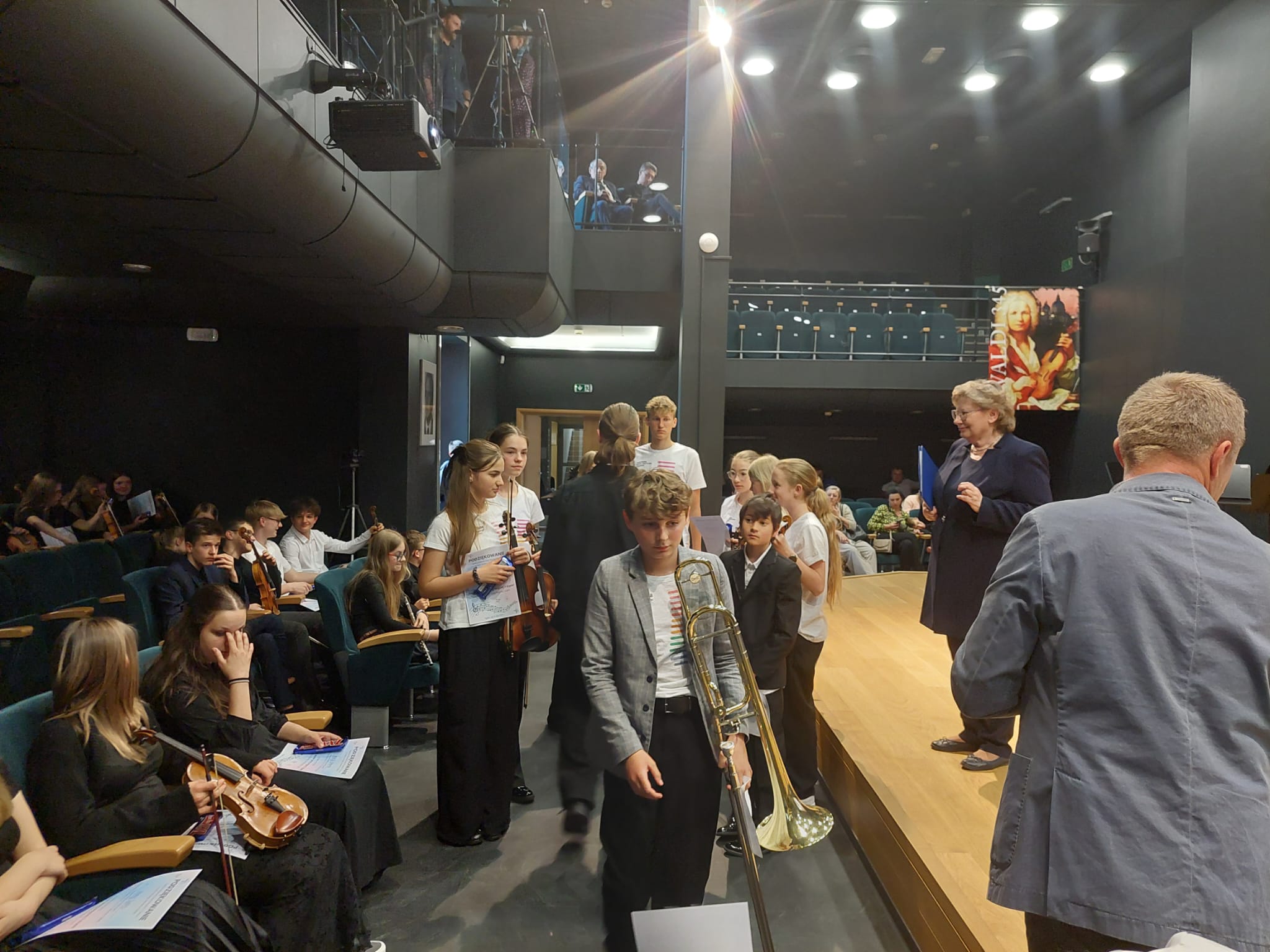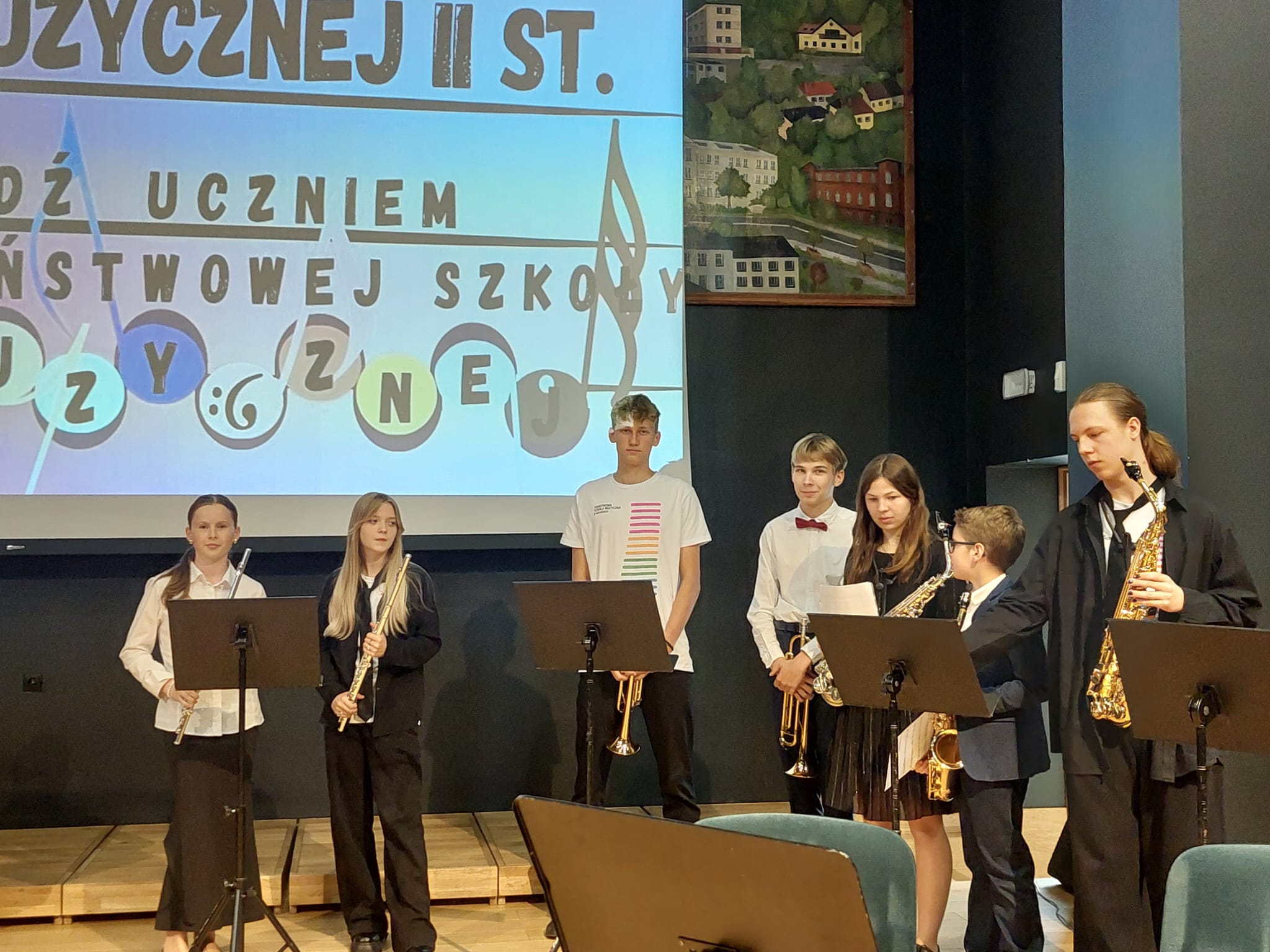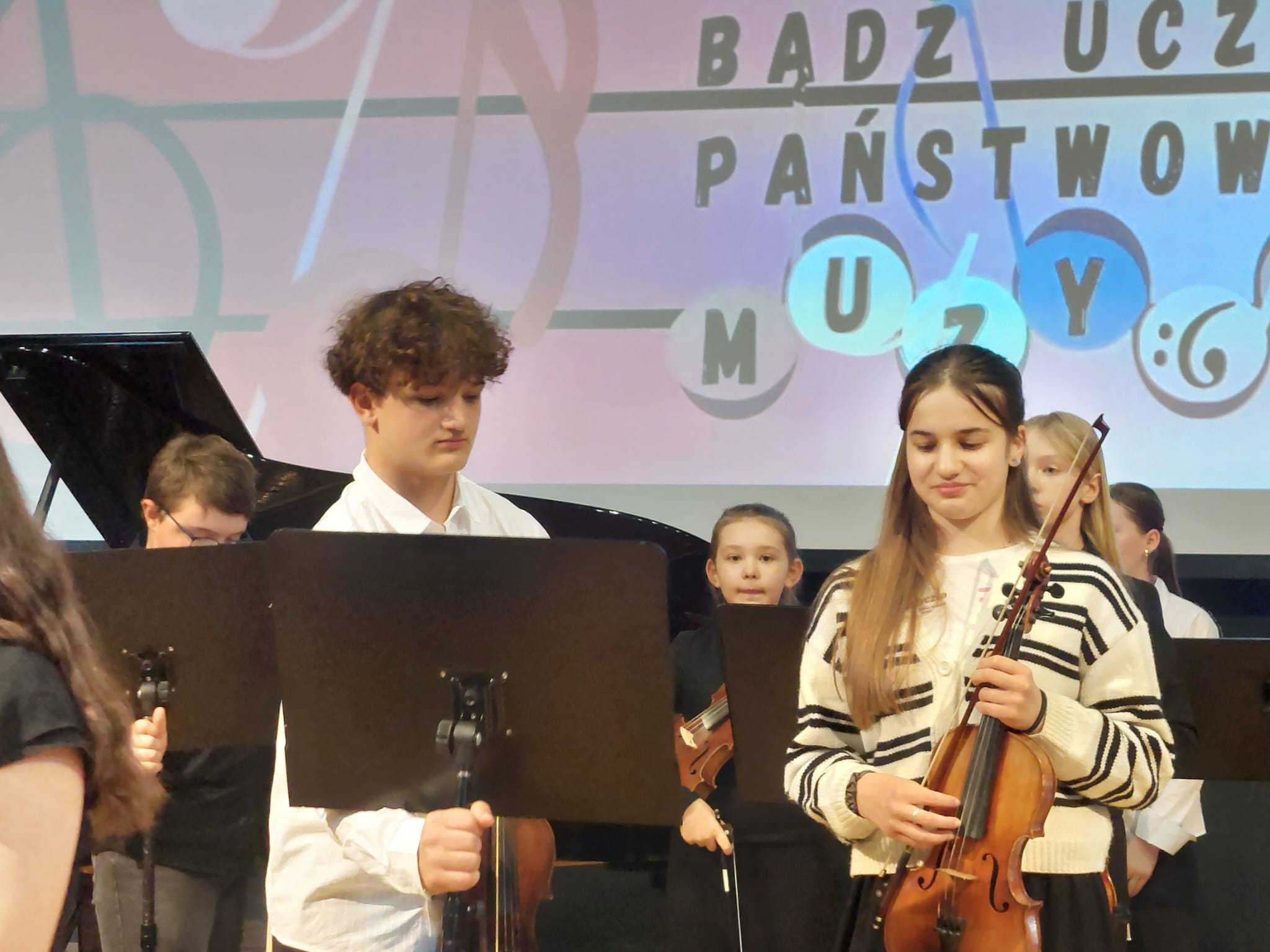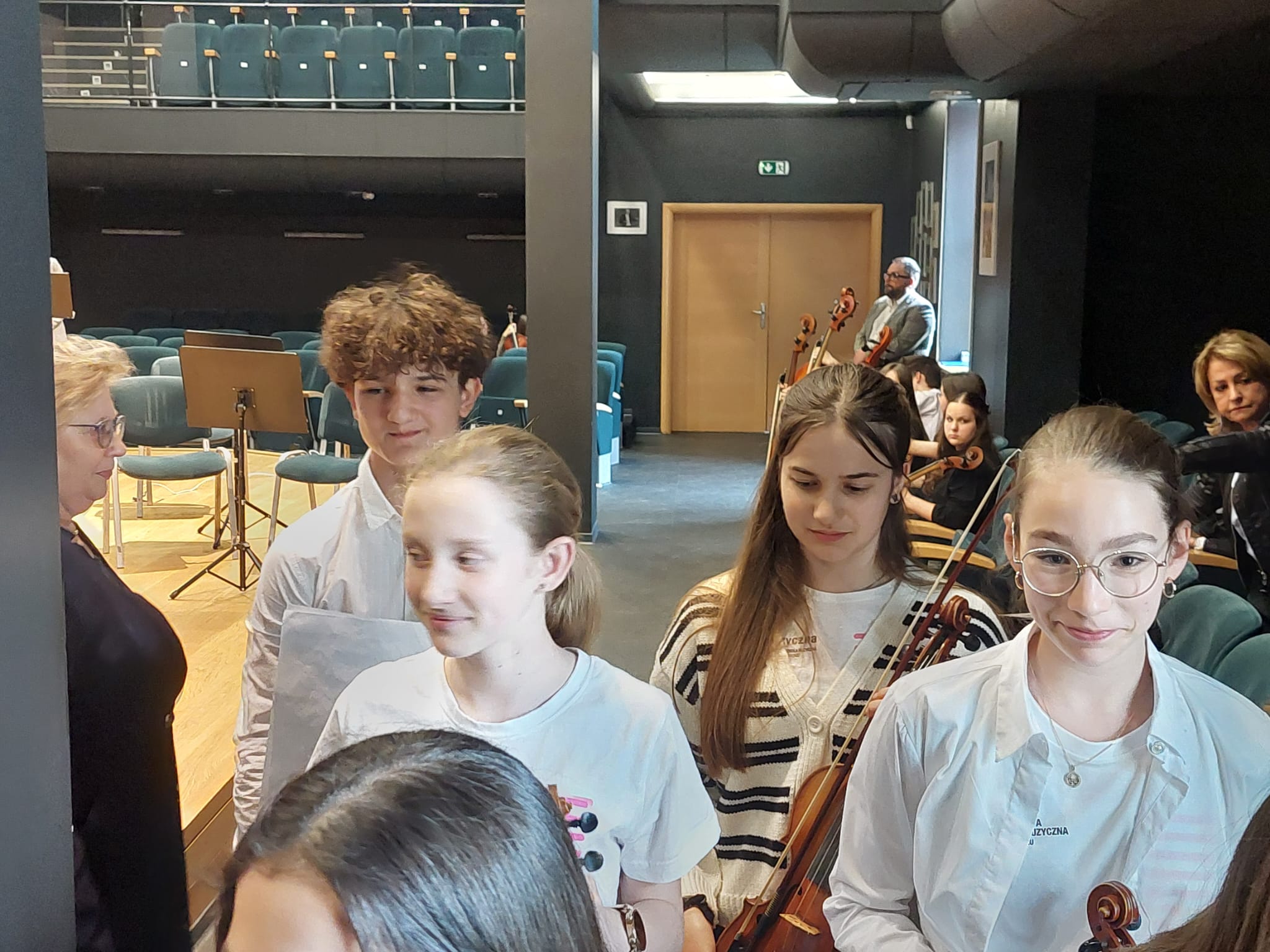 Uczniowie naszej szkoły zagrali we wspólnym utworze oraz Zuzanna Kondys - skrzypce i Mateusz Keler - wiolonczela, wystąpili jako soliści.