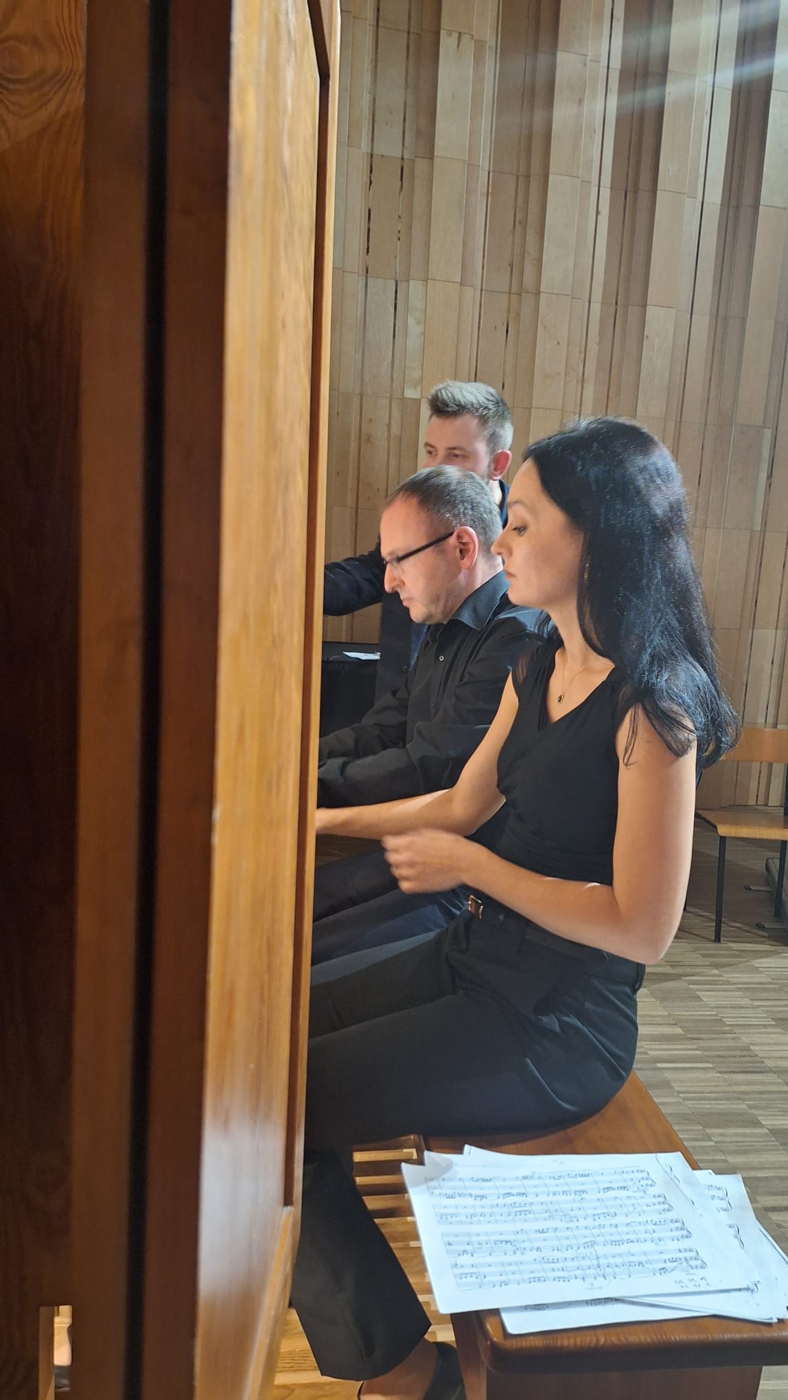 Przesłuchania tych dwóch kategorii odbywały się w dniu 30.10.25., w godz.9-18.30. Potem jury w składzie: Prof. Julian Gembalski (przewodniczący), MgA. Petr Čech (Czechy), MgA. Marek Vrabel (Słowacja) i dr Agnieszka Tarnawska (Poznań) udało się na obrady, a pół godziny przed ogłoszeniem wyników (w czasie przygotowywania dyplomów dla laureatów) odbył się półrecital Państwa Agnieszki i Jarosława Tarnawskich. Państwo Tarnawscy oboje są wykładowcami Akademii Muzycznej w Poznaniu, a czas oczekiwania na wyniki wypełnili pięknym wykonaniem utworów w duecie organowym. Zagrali 3 utwory: