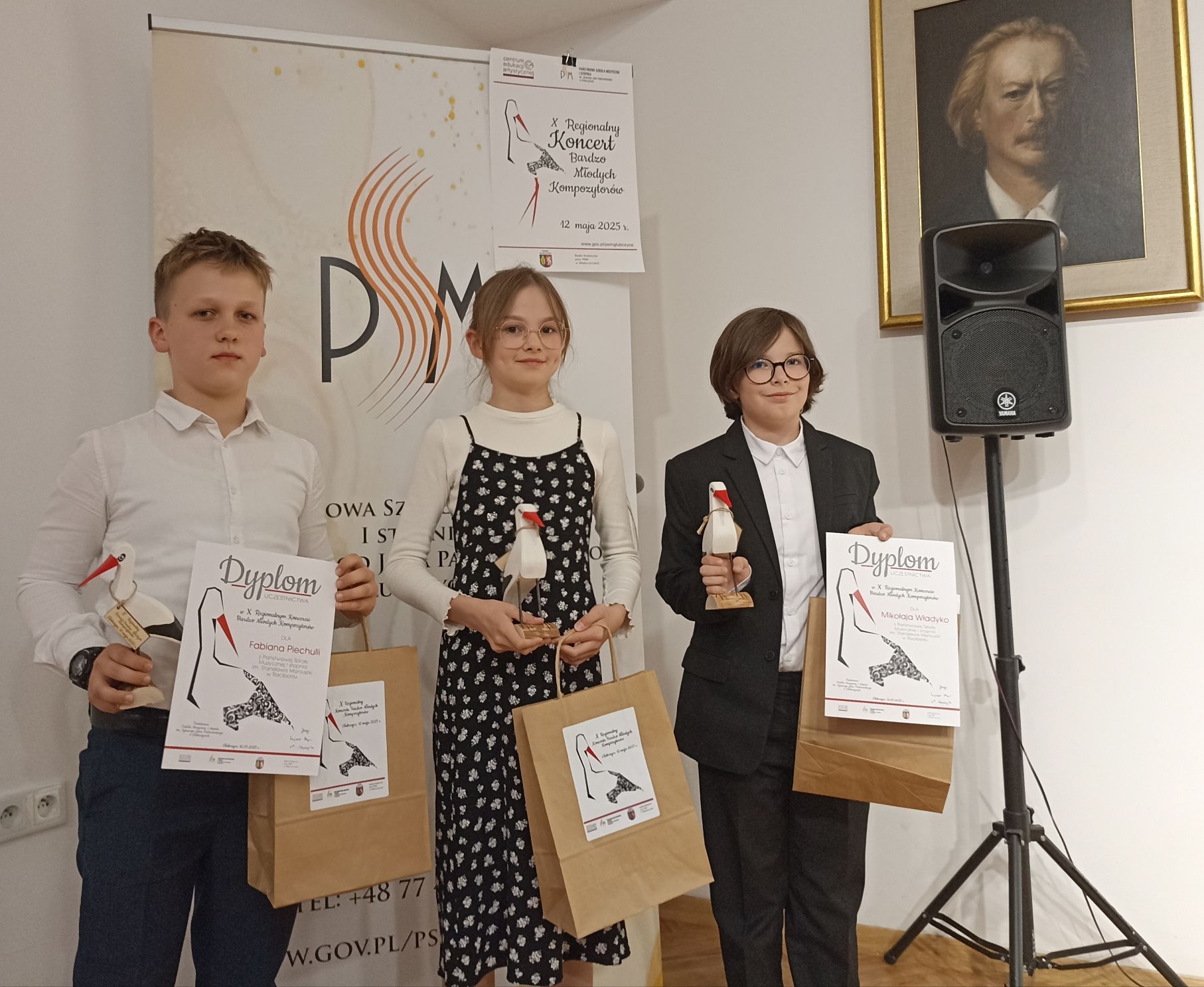 Wykonawcy, kompozytorzy otrzymali pamiąkowe dyplomy, bociany - maskotkę warsztatów/koncertu oraz torbę z upominkami (m.in. "Nutatnikiem" - drukowanym zbiorem wszystkich kompozycji prezentowanych na tym koncercie).