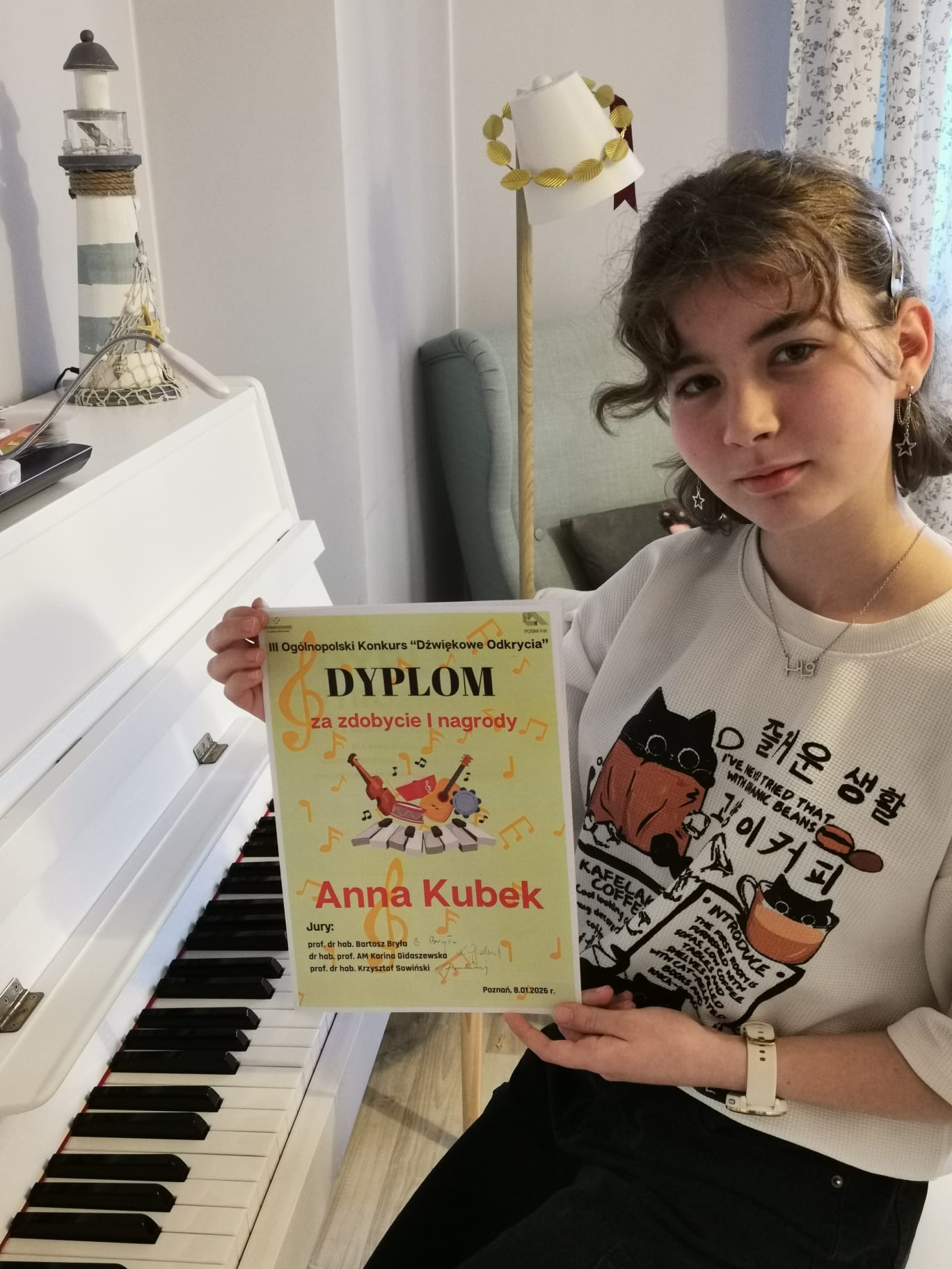 Emil Szczuka z klasy I c6 zdobył i Anna Kubek z klasy 2 c4 otrzymali dwie I nagrody w X Ogólnopolskim Konkursie "Dźwiękowe Odkrycia", który odbył się 8.01.2026 r.