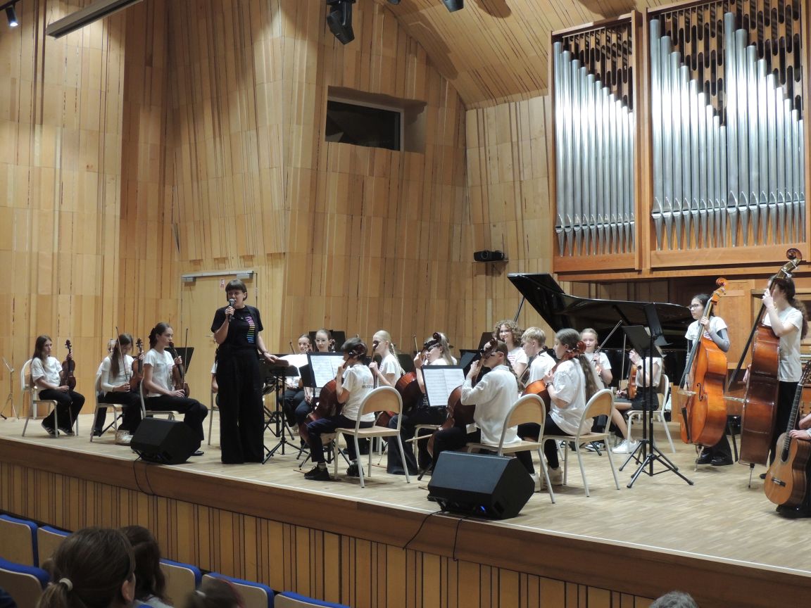 Pierwszą częścią tego wyjątkowego dnia był Koncert na którym zaprezentowały się wszystkie sekcje: fortepianu, organów i akordeonu; instrumentów smyczkowych; instrumentów dętych i perkusji. Instrumentaliści i zespoły prezentowały brzmienia poszczególnych instrumentów. A na scenie zaprezentowali się uczniowie, którzy jeszcze nie tak dawno sami chodzili po tej szkole i szukali swojego wymarzonego instrumentu. Koncert prowadzili i opowiadali o szkole: pani Ewelina Mrozek i pan Dariusz Banaś.