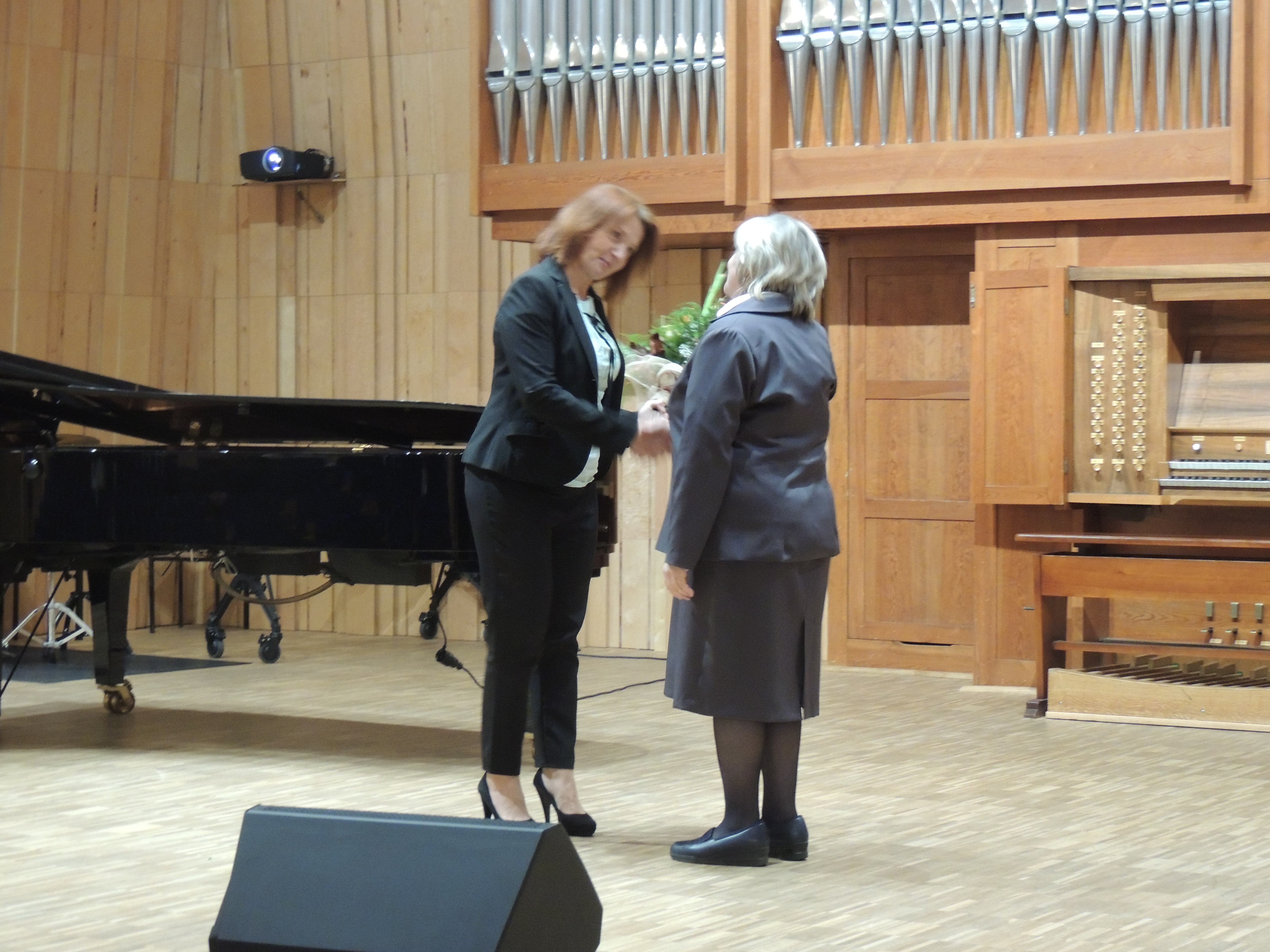 Koncert otworzyła Pani Dyrektor Anna Mucha, która złożyła Jubilatce gratulacje. Następnie został odczytany list gratulacyjny od Prof. dr hab. Juliana Gembalskiego z Akademii Muzycznej w Katowicach i rozpoczął się koncert. Zagrali kolejno: