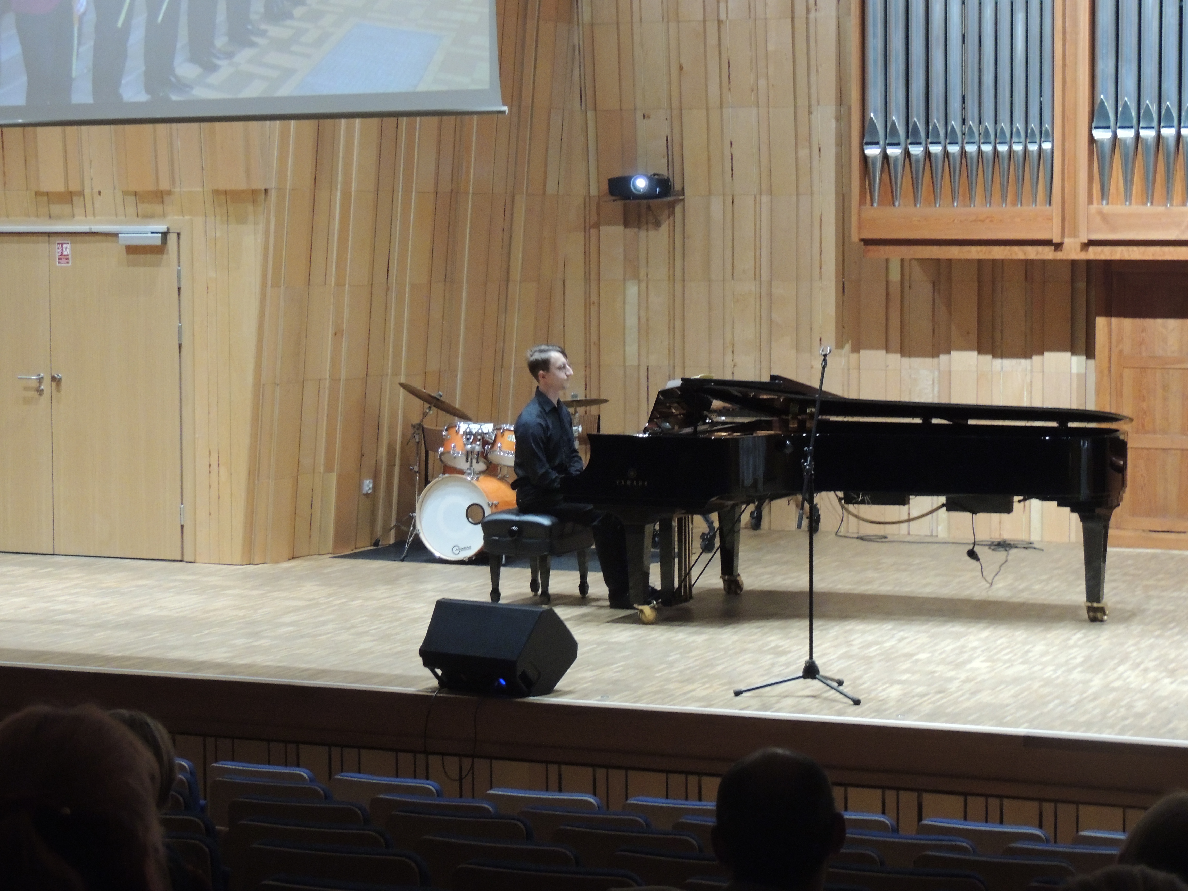 Kolejnym wykonawcą był Mariusz Wycisk, absolwent klasy organów PSM II stopnia w Rybniku, który od tego roku pracuje w naszej szkole. Zagrał utwór: Concert Overture c-moll nr 2 Alfreda Hollinsa.