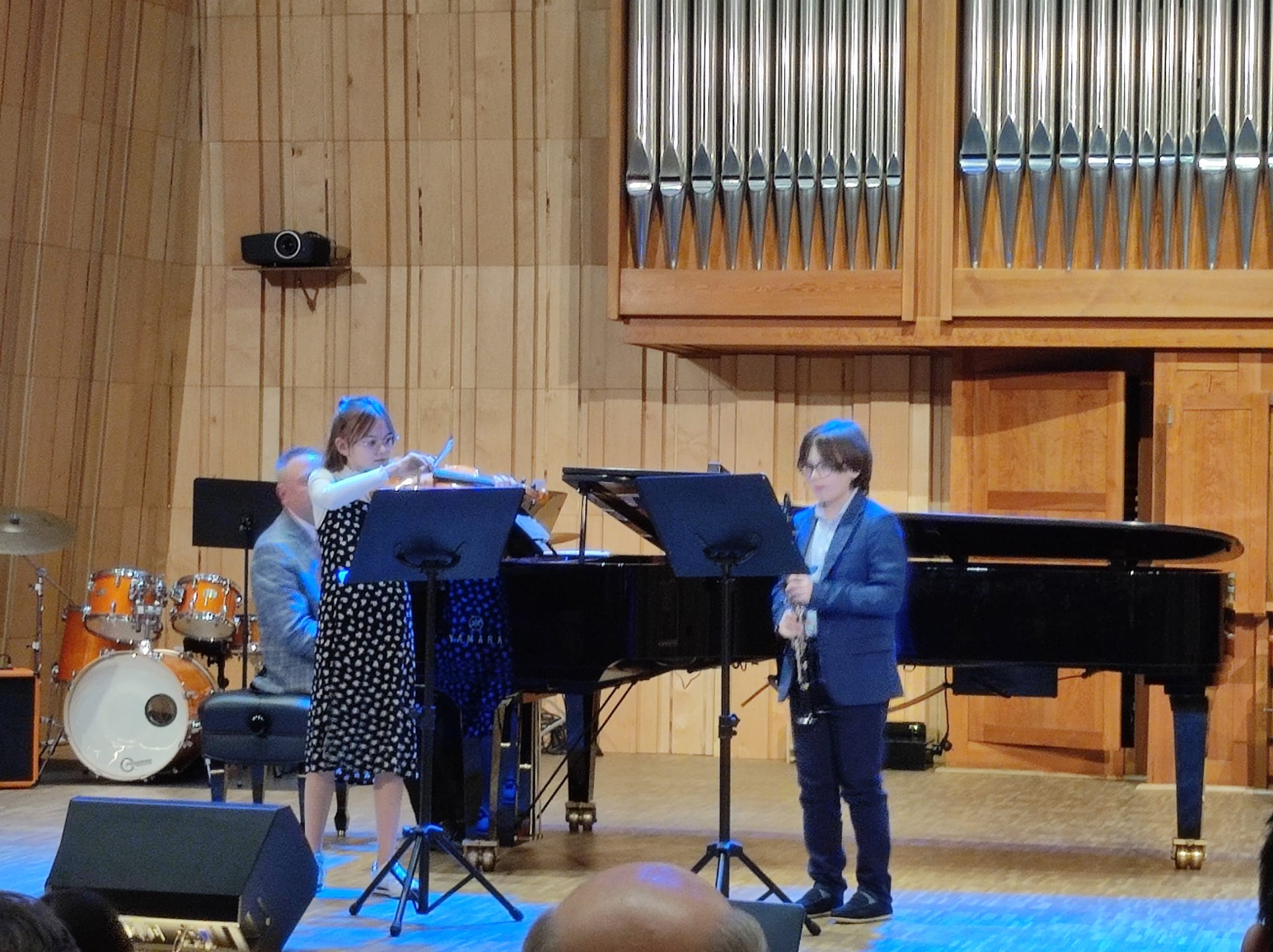12. Duet klarnetowo-skrzypcowy w składzie: Nina Głąb, Mikołaj Władyko z kl III c6 - “Kolorowy wiatr” A. Menken, S. Schwartz - nau. A. Mucha
