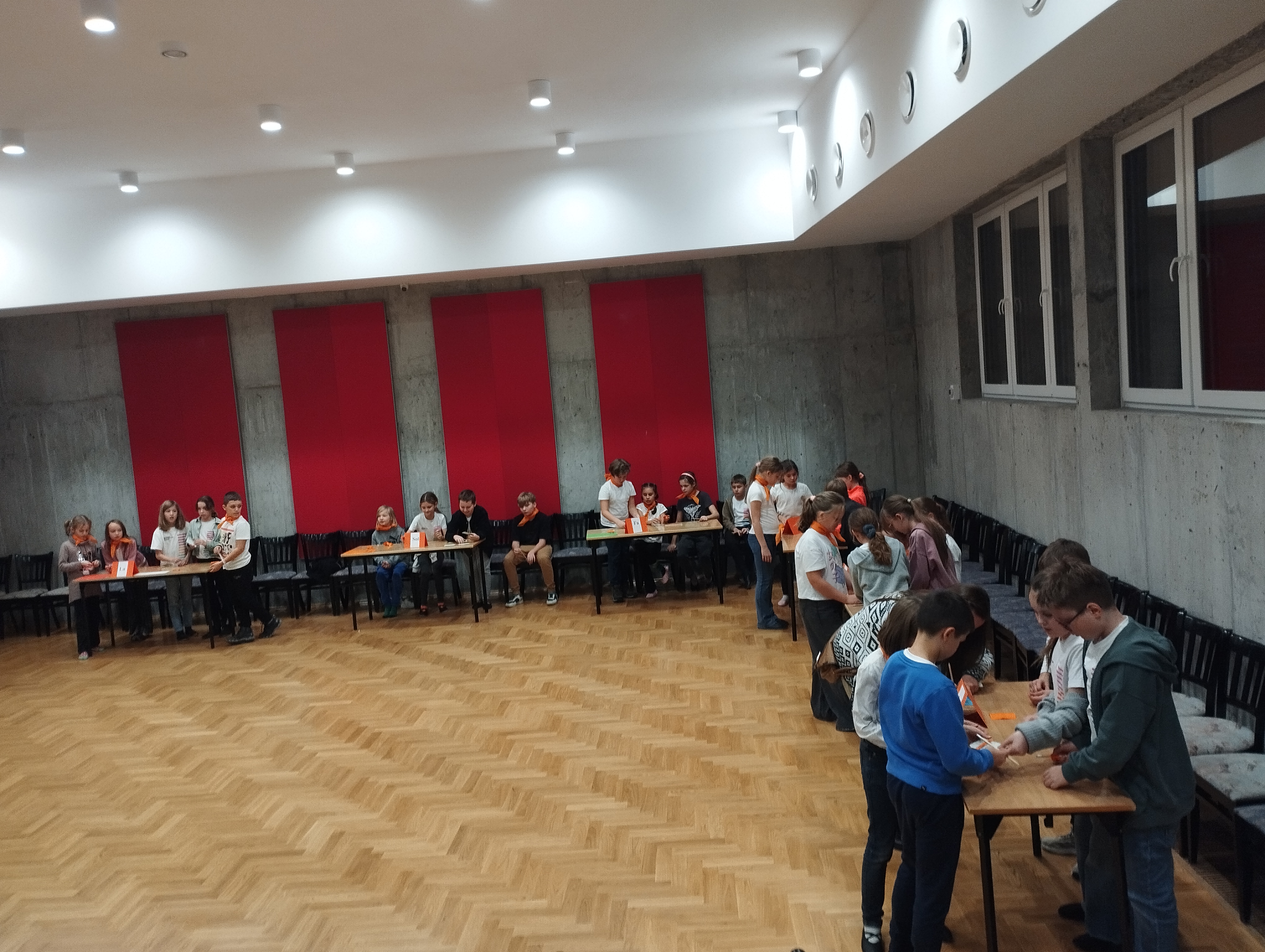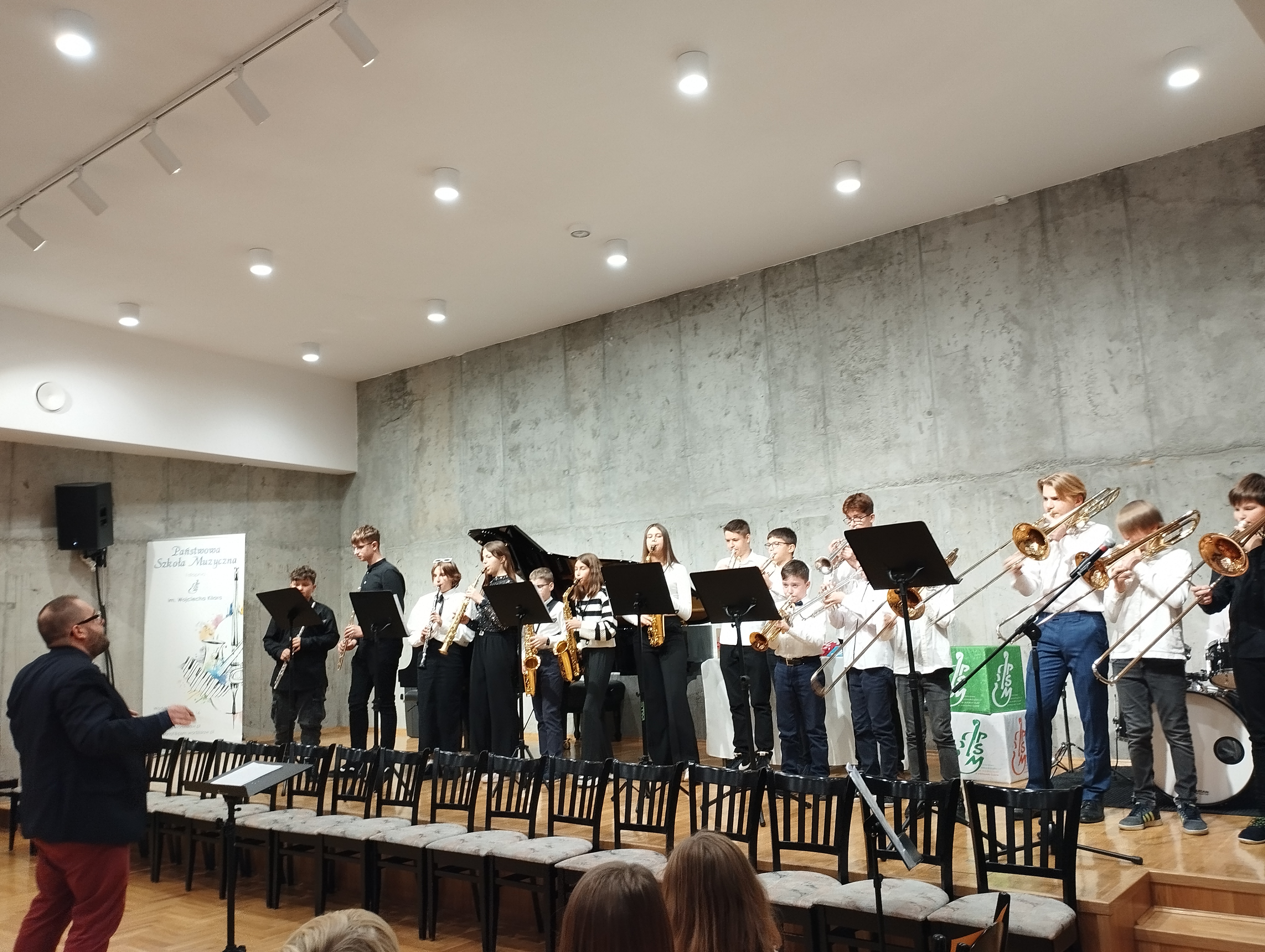 W czwartek, 21.11.2024 r., uczniowie klasy III razem z opiekunami: p. Barbarą Wałach i p. Aleksandrą Gawin, udali się na warsztaty MUSIC CHALLENGE do Szkoły Muzycznej w Wodzisławiu Śląskim. Tam spotkali się i zapoznali ze swoimi równolatkami z Wodzisławia. Po przywitaniu, uczniowie zostali podzieleni na mieszane grupy: DO, RE, MI, FA, SOL, LA, SI, DO. Po krótkiej rozgrzewce integracyjnej, rozpoczęły się zmagania słuchowe. Drużyny musiały m.in.: rozpoznawać trójdźwięki ukryte w melodii, rozpoznawać interwały wybierając odpowiednie opcje, dopasowywać usłyszane rytmy, z rozsypanych wartości rytmicznych. Muzyczne zmagania, przeplatane były zabawami ruchowymi, wprowadzającymi w temat kolejnych zadań. W ostatnim zadaniu, drużyny miały za zadanie z nazw nut odczytać wiadomość, którą zostawiły dla nich Panie Basie. Panie w liście dziękowały za pilną pracę i zapraszały na pyszny poczęstunek. Uczniowie zmęczeni wykonywaniem zadań z przyjemnością posilili się przygotowanym przez gospodarzy poczęstunkiem. Na koniec wszyscy uczniowie otrzymali dyplomy uczestnictwa i mały upominek, a podsumowanie muzycznie ubogacił zespół dęty z Wodzisławia, którego uczniowie z uwagą i przyjemnością słuchali. Po podsumowaniu, uczniowie pozytywnie wymęczeni i wyćwiczeni, udali się do autobusu, który zawiózł ich pod szkołę, gdzie czekali już rodzice. Dziękujemy Pani Basi Wałach i Pani Basi Grobelny, które przygotowały tak ciekawe, pełne wiedzy i zabawy warsztaty, oraz Radzie Rodziców, która zasponsorowała autobus.