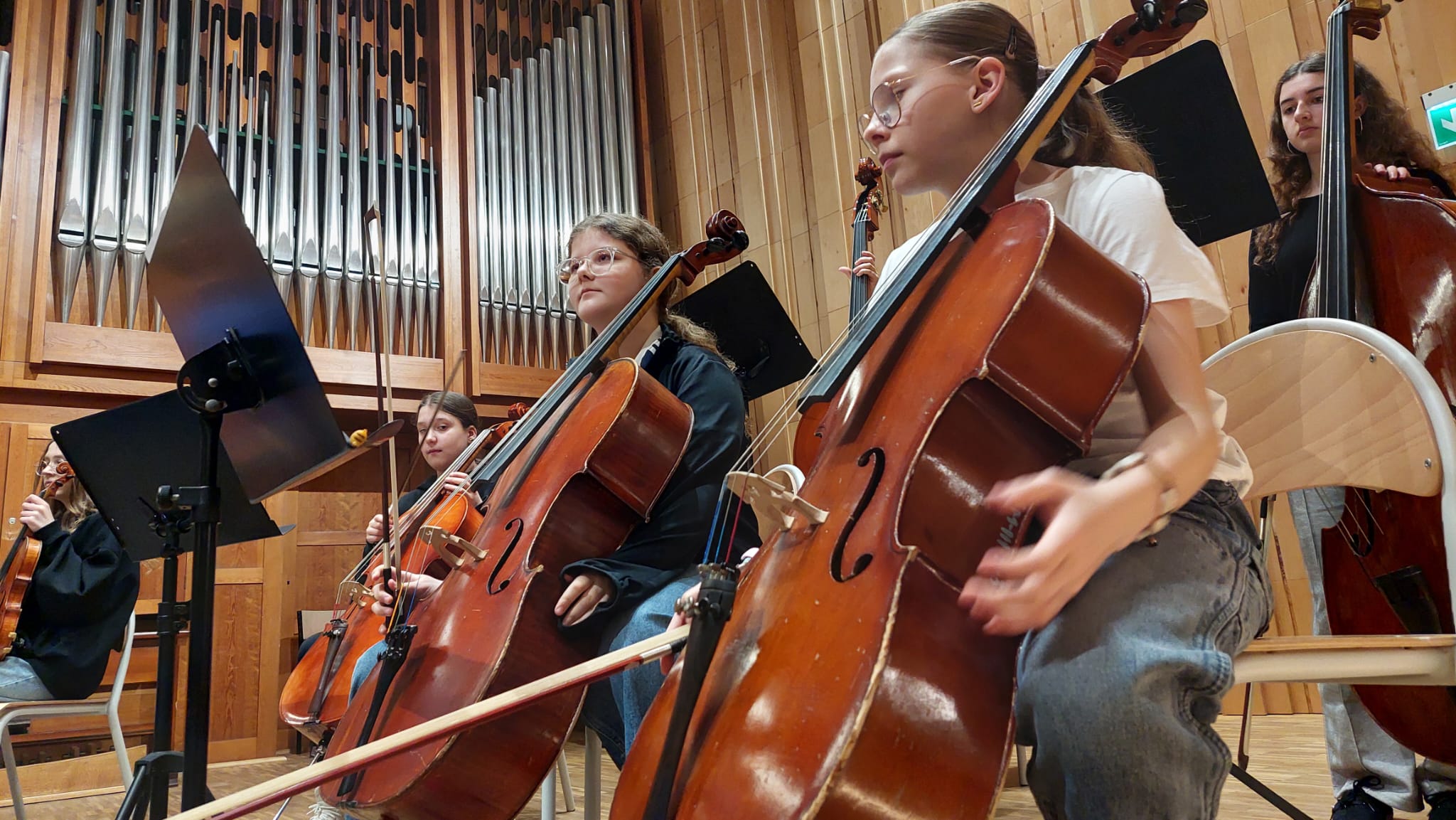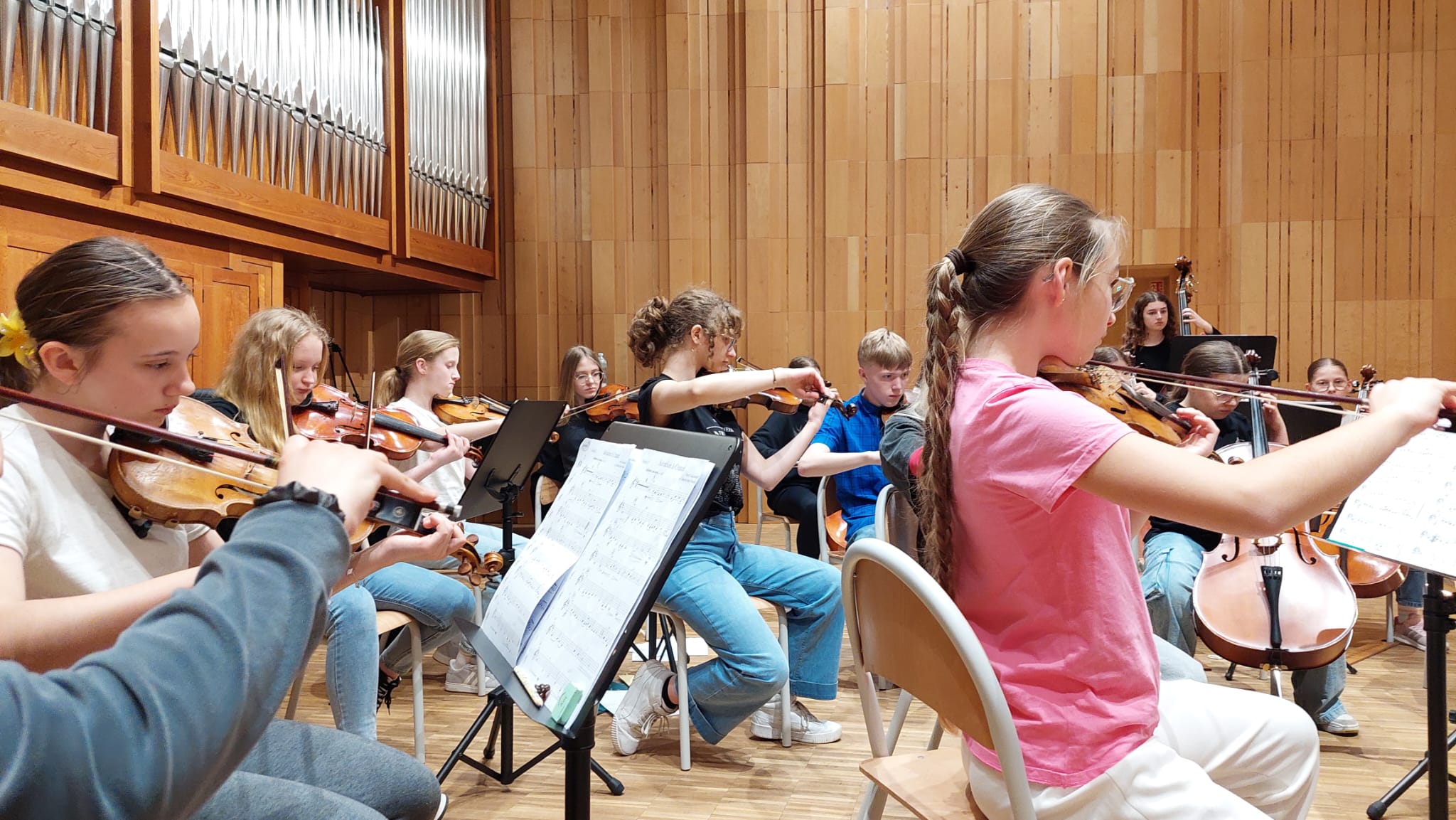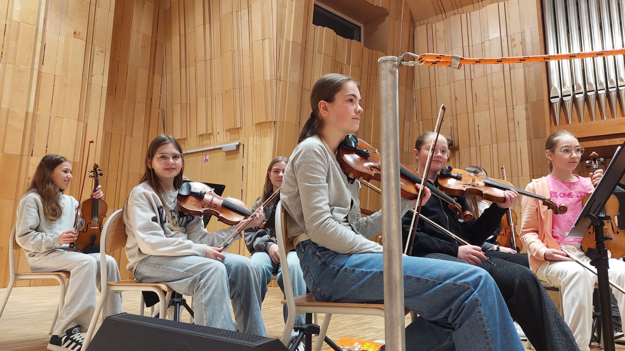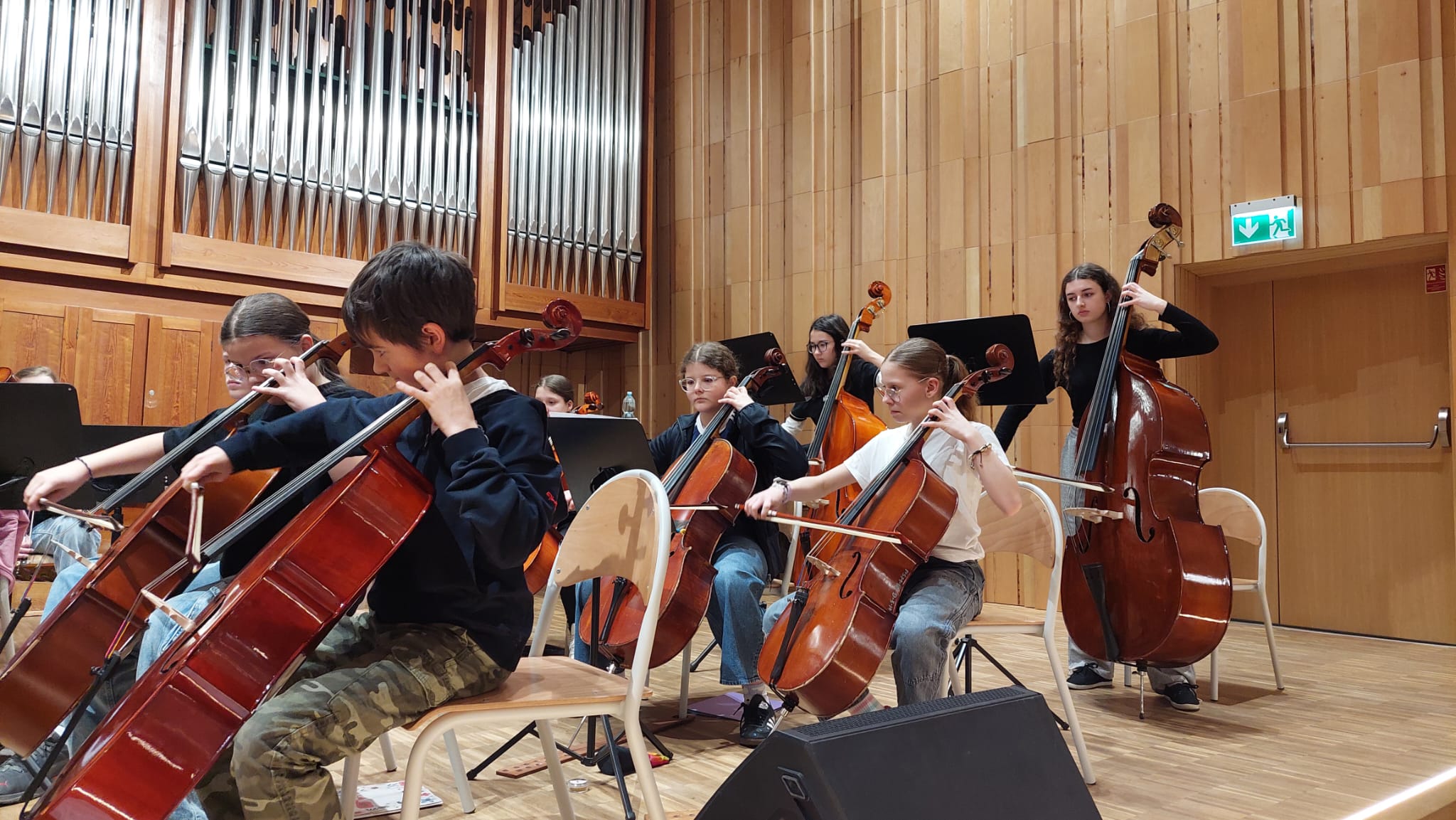 Co można było robić ciekawego w Raciborzu w sobotę 29 marca 2025 r.… spać, leniuchować, korzystać z miejskich atrakcji, wciągnąć się w serial na Netflixie. A co wybrali uczniowie Zespołu Instrumentów Smyczkowych – warsztaty orkiestrowe ze znakomitym dyrygentem Filipem Hugetem. No może nie do końca był to ich wybór, bo to przecież sobota i tak wcześnie rano – ale wszyscy punktualnie (no może z jednym małym wyjątkiem J) stawili się na warsztaty. Byli i tacy, którzy przyjechali wcześniej, bo pamiętali, że trzeba przygotować krzesła i pulpity.
