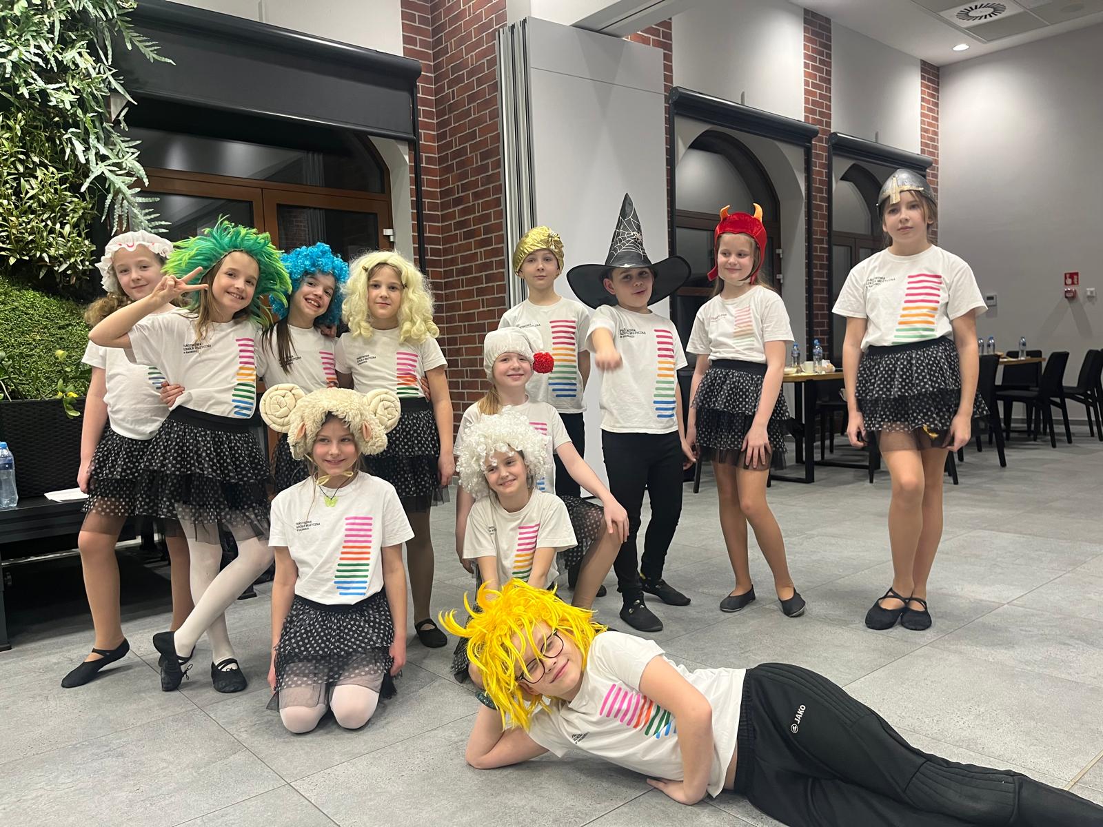Podczas warsztatów nie brakowało kreatywnych zabaw rytmicznych, ćwiczeń teatralnych, działań głosowych oraz ruchowych. Uczniowie mieli okazję pracować nad koordynacją, wyobraźnią, ekspresją sceniczną i świadomością ciała. Było dużo śmiechu, spontaniczności i twórczej energii. Wspólne działania integrowały uczestników i pozwoliły im odkryć nowe możliwości artystycznego wyrazu.