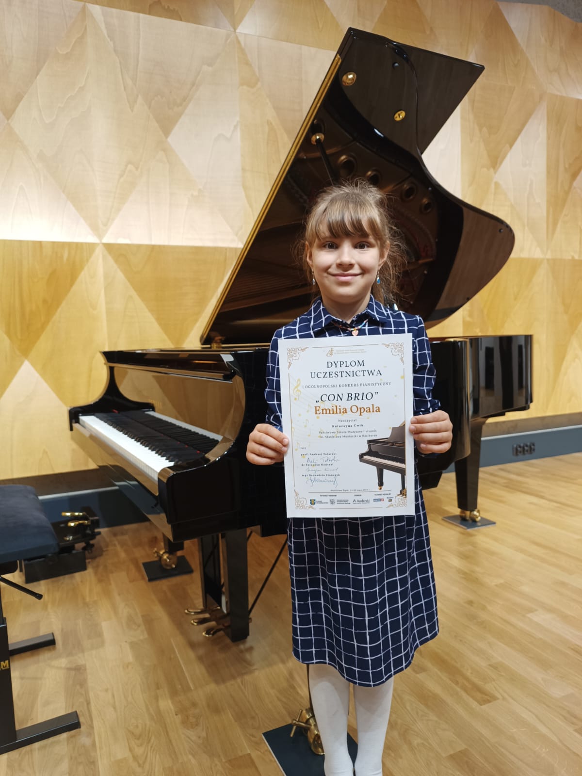 19 i 20 maja 2025 r. liczna grupa uczniów klas fortepianu naszej szkoły wzięła udział w I Ogólnopolskim Konkursie Pianistycznym „CON BRIO”, który odbył się w Państwowej Szkole Muzycznej I stopnia im. Wojciecha Kilara w Wodzisławiu Śląskim. Uczestnicy – a było ich ponad 100 - podzieleni zostali na osiem grup, zgodnie z klasą, do której uczęszczają. Naszą szkołę reprezentowali: Emilia Opala z kl. I C-6 pani Katarzyny Cwik, Grzegorz Zippel z klasy III C-6 pani Hanny Rodzoń, Hanna Pawłowska z kl. IV C-6 i Katarzyna Kul z klasy V C-6 pani Gabrieli Plura, Anna Kubek z klasy I C-4, Paulina Zapłata z klasy IV C-6 oraz Aleksander Krawczyk z klasy V C-6 pani Elżbiety Włosek – Żurawieckiej. Jury w składzie: prof. Andrzej Tatarski, dr Szczepan Kończal oraz mgr Bernadeta Stańczyk przyznało nagrody i wyróżnienia. Z grupy naszych uczniów nagrody otrzymali: