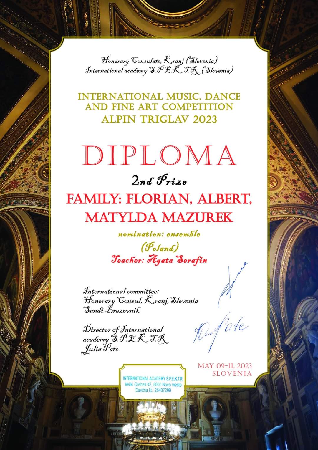 - II miejsce na Międzynarodowym Konkursie Muzycznym "ALPIN TRIGLAV".