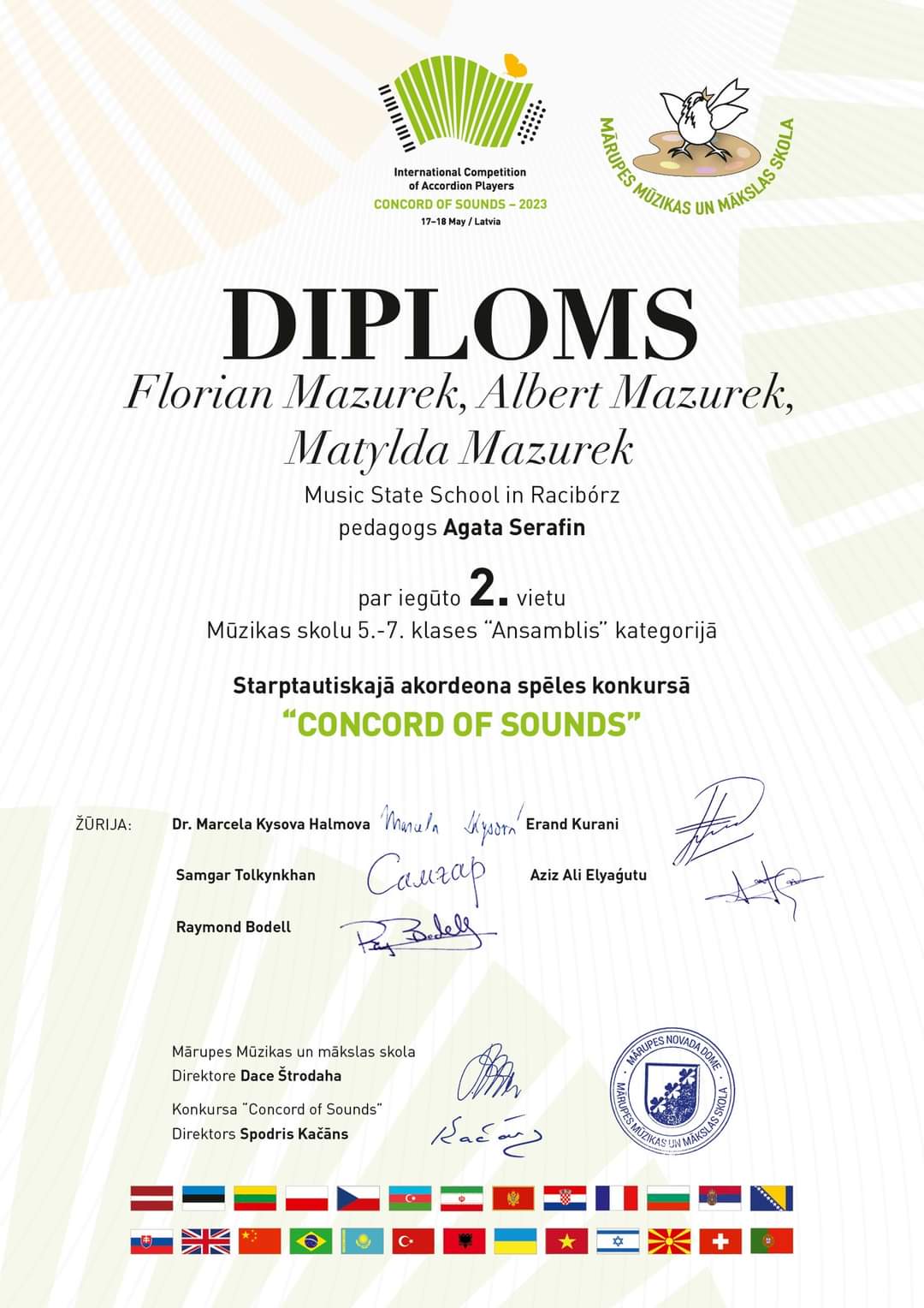 - II miejsce na Międzynarodowym Konkursie Akordeonowym "CONCORD OF SOUND", kat. Zespoły kameralne