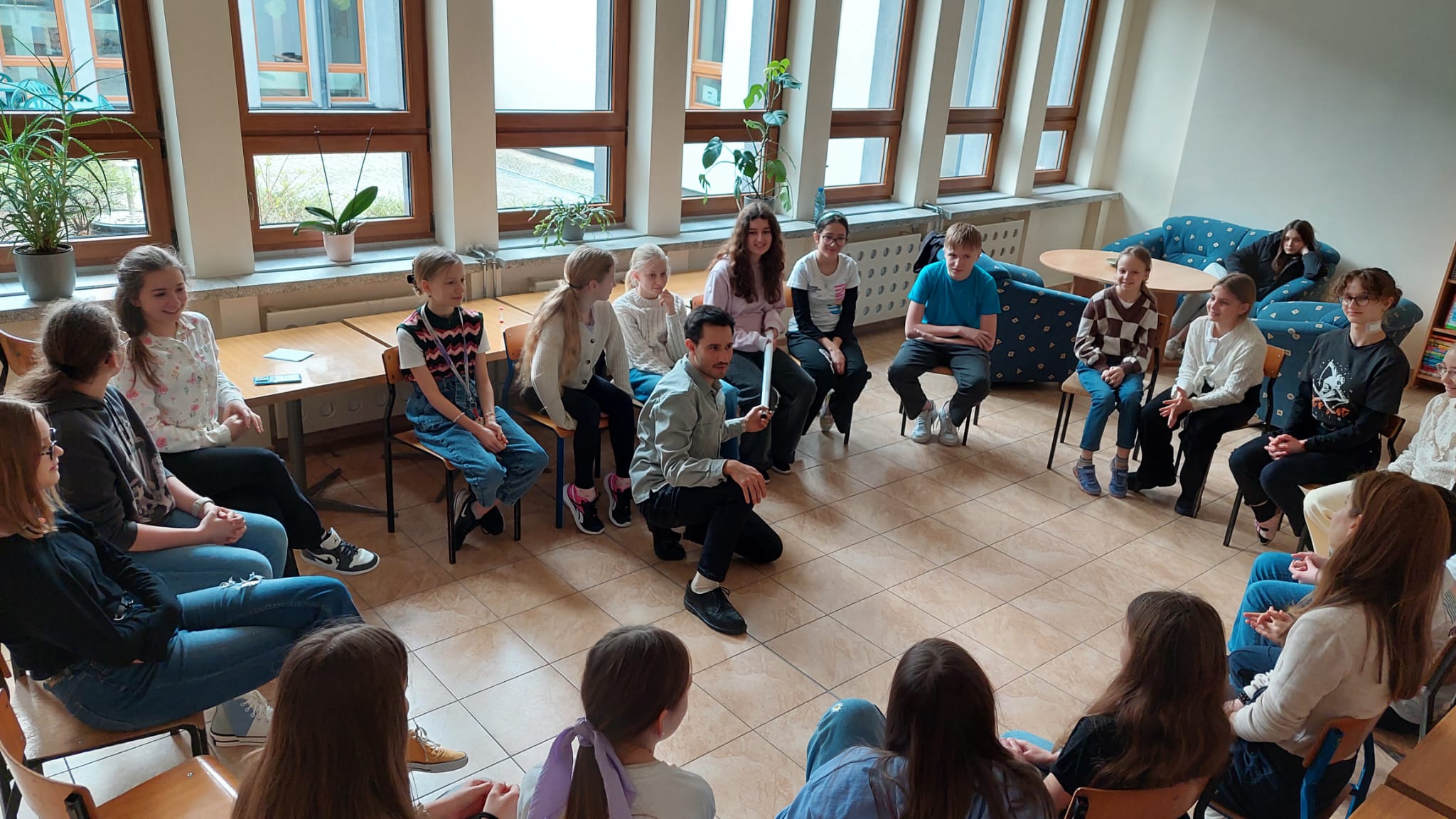 W sobotę 16 marca punktualnie o…a właściwe nie tak. W sobotę 16 marca 2024 r., piętnaście minut przed planowanym rozpoczęciem warsztatów, Zespół Instrumentów Smyczkowych siedział przygotowany i nastrojony na scenie i oczekiwał na gościa specjalnego. Warto o tym wspomnieć, bo gdy gość przyszedł na salę koncertową nie mógł uwierzyć, że wszyscy są już gotowi i czekają. Był pewien, że zaczniemy z piętnastominutowym opóźnieniem a nie piętnaście minut przed czasem. Brawa dla zespołu!