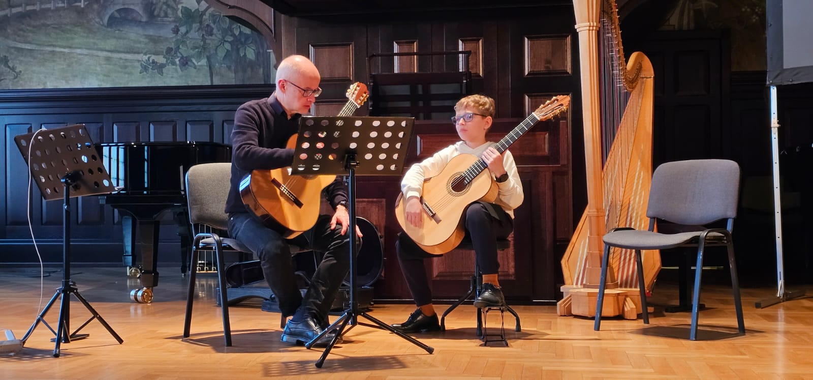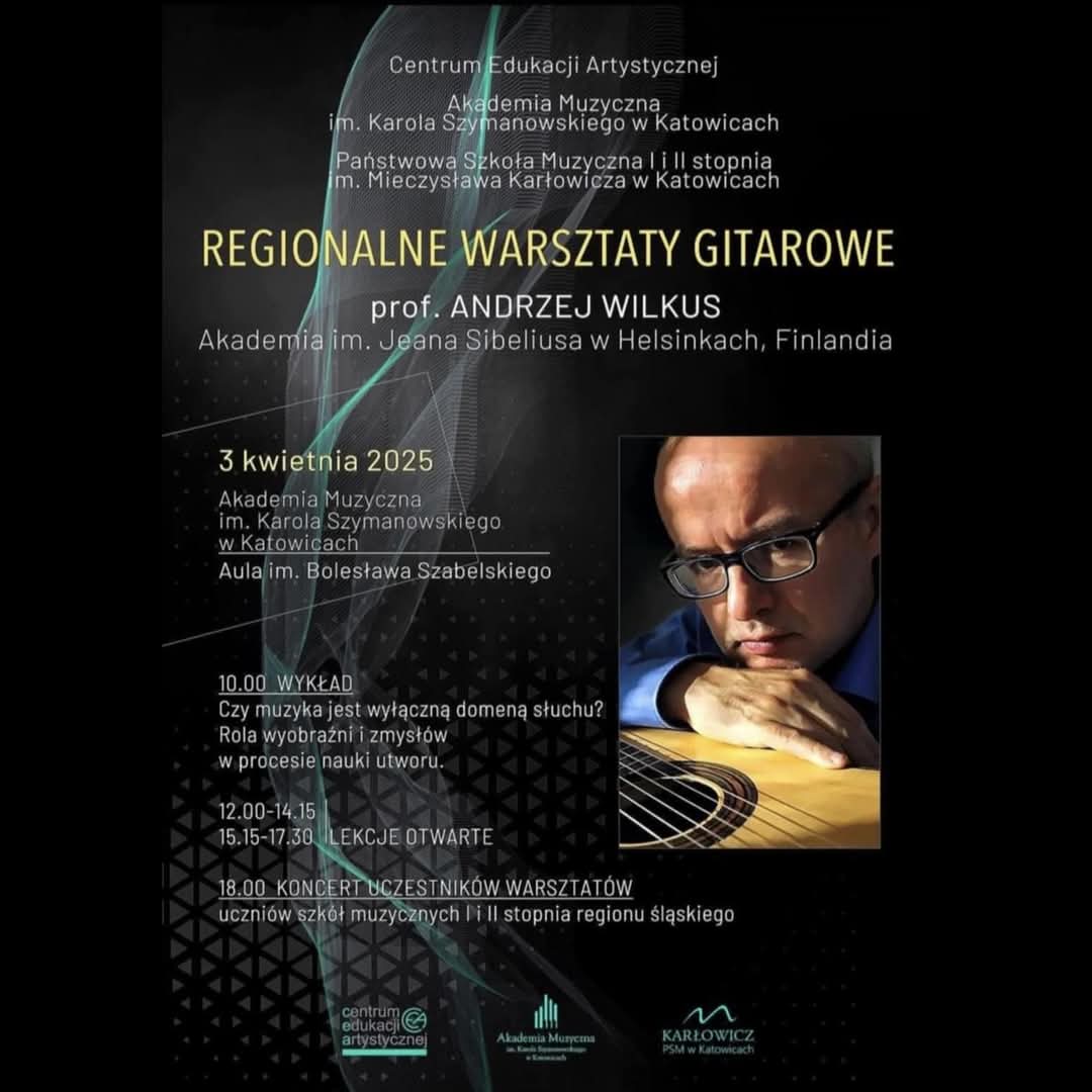 3 kwietnia 2025r. odbyły się Regionalne Warsztaty Gitarowe, organizowane przez Centrum Edukacji Artystycznej , które poprowadził prof. Andrzej Wilkus (z Akademii Muzycznej im.J.Sibeliusa w Helsinkach). Warsztaty rozpoczęły się bardzo ciekawym wykładem nt.: "Rola wyobraźni i zmysłów w procesie nauki utworów". Następnie odbyły się lekcje mistrzowskie, w których czynny udział wziął uczeń naszej szkoły Mateusz Labus. Ucznia przygotował pan Mariusz Swoiński. Ponadto Mateusz zagrał również na wieczornym koncercie podsumowującym warsztaty.