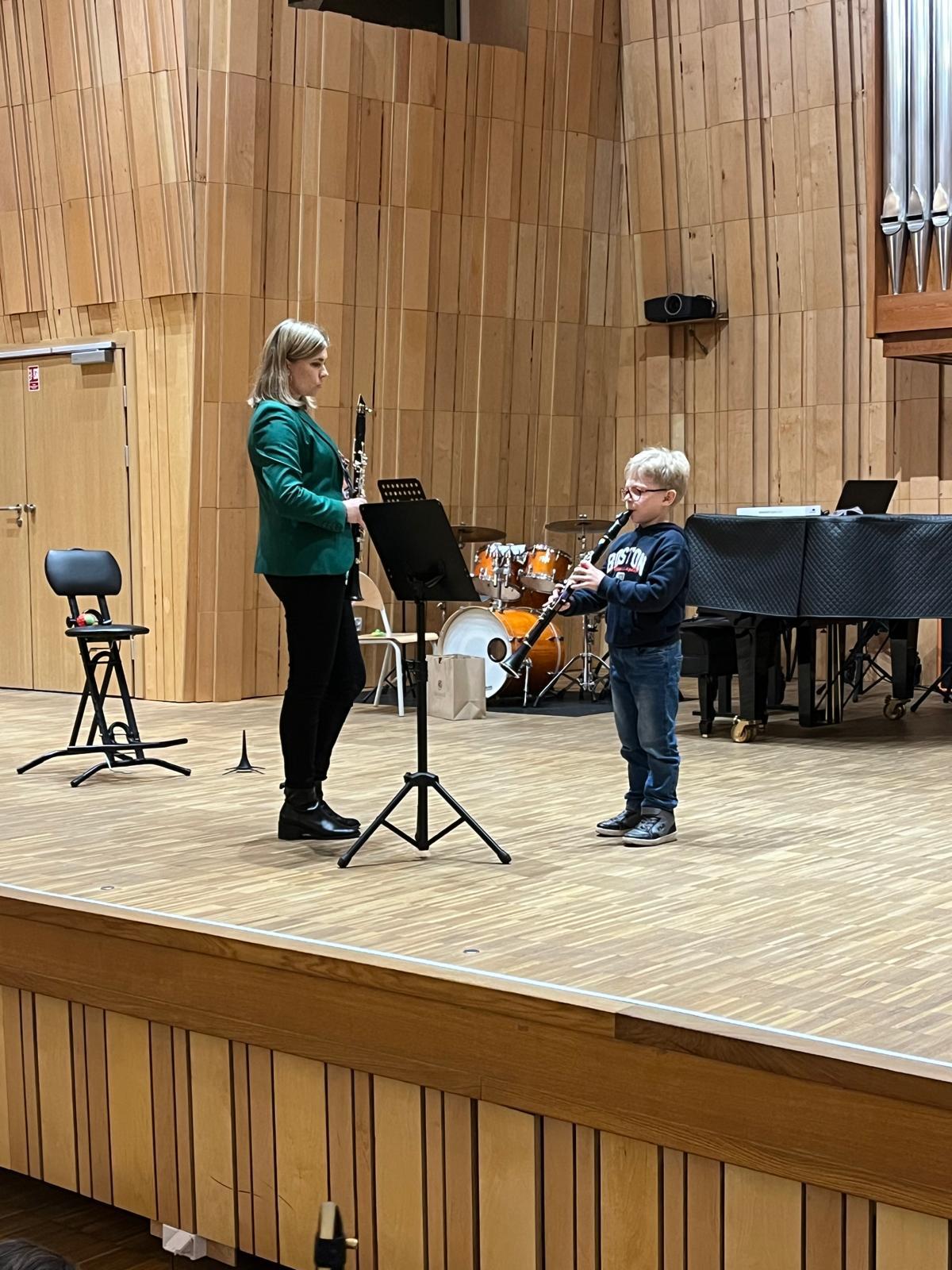 Uczniowie byli bardzo zaangażowani w grę ćwiczenia, zadawali dużo pytań związanych z grą na klarnecie i nie tylko … na które pani Barbara chętnie udzielała odpowiedzi