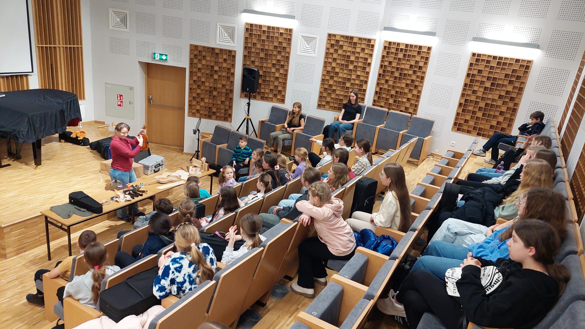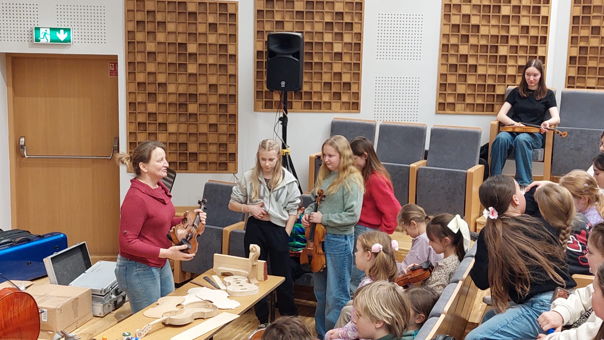 Zaraz po feriach zimowych, tj. 5.03.2025 r., do naszej szkoły zawitała lutniczka z Jastrzębia-Zdroju, pani Irena Sobecka. Warsztaty, które przeprowadziła dla całej sekcji smyczkowej, przebiegły w bardzo miłej atmosferze, pełnej uśmiechów, zadziwień i ciekawości. Uczniowie dowiedzieli się, jak przebiega proces tworzenia instrumentów (i że trwa on znacznie dłużej, niż można by pomyśleć!), oraz jak odróżnić skrzypce lutnicze od fabrycznych i skąd wynika tak duża różnica w ich brzmieniu. Uczniowie poznali również zasady dbania o swój instrument, aby wizyty u dentysty-lutnika nie były konieczne. Okazało się, że kołderki w futerałach pełnią niezwykle ważną funkcję ochronną dla naszych instrumentów, a skrzypce i wiolonczelki warto czasem wyczyścić ryżem, ale tylko i wyłącznie nieugotowanym!