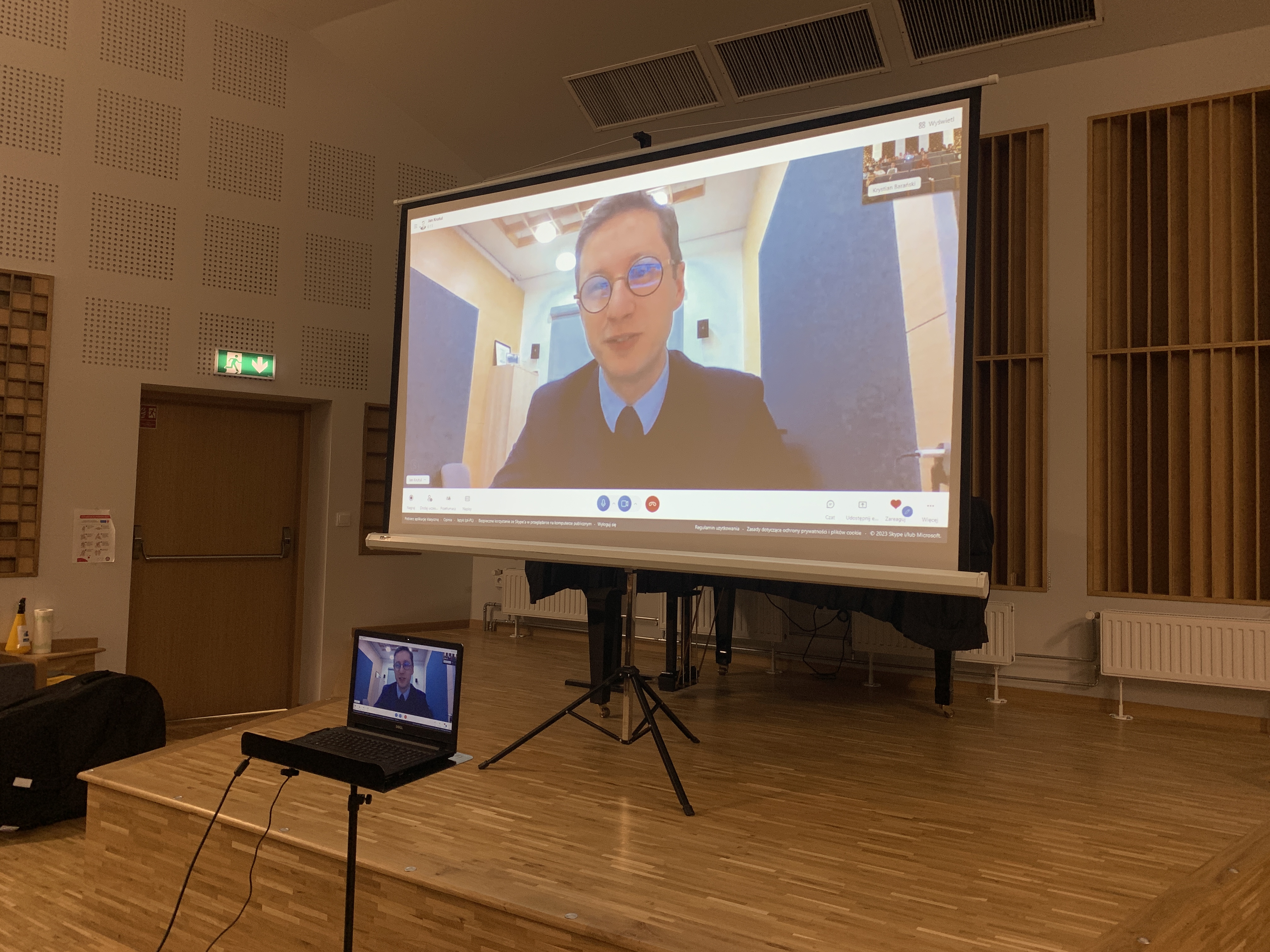 9 stycznia 2024 r. mieliśmy przyjemność spotkać się online z niezwykłym dyrygentem i kompozytorem – Janem Krutulem. Na co dzień prowadzi on działalność pedagogiczną na Uniwersytecie Muzycznym Fryderyka Chopina – Filii w Białymstoku. Jan Krutul jest członkiem Akademii Fonograficznej oraz prezesem Stowarzyszenia Miłośników Muzyki Chóralnej Cantica Cantamus. Podczas naszych warsztatów uczniowie PSM I st.