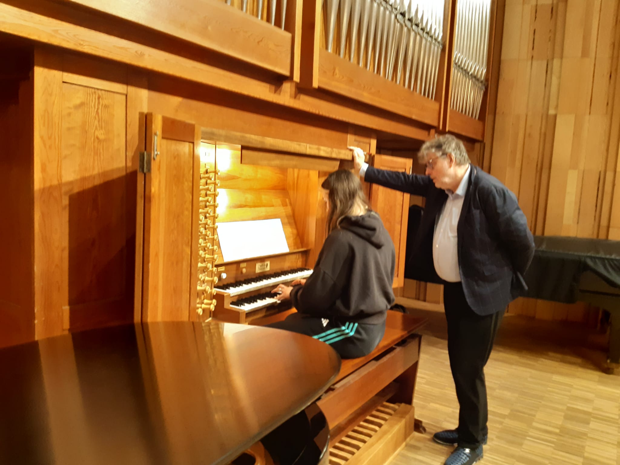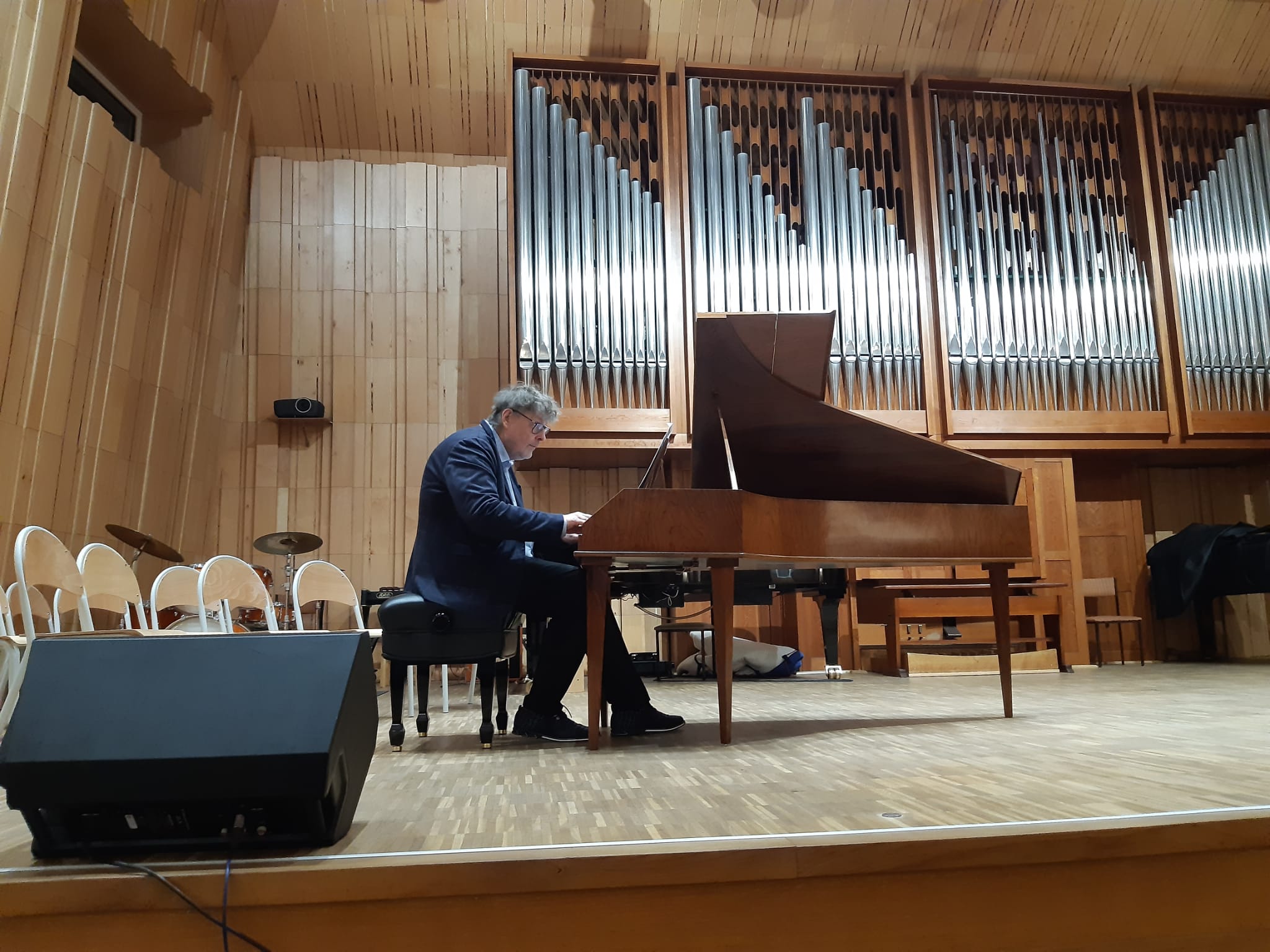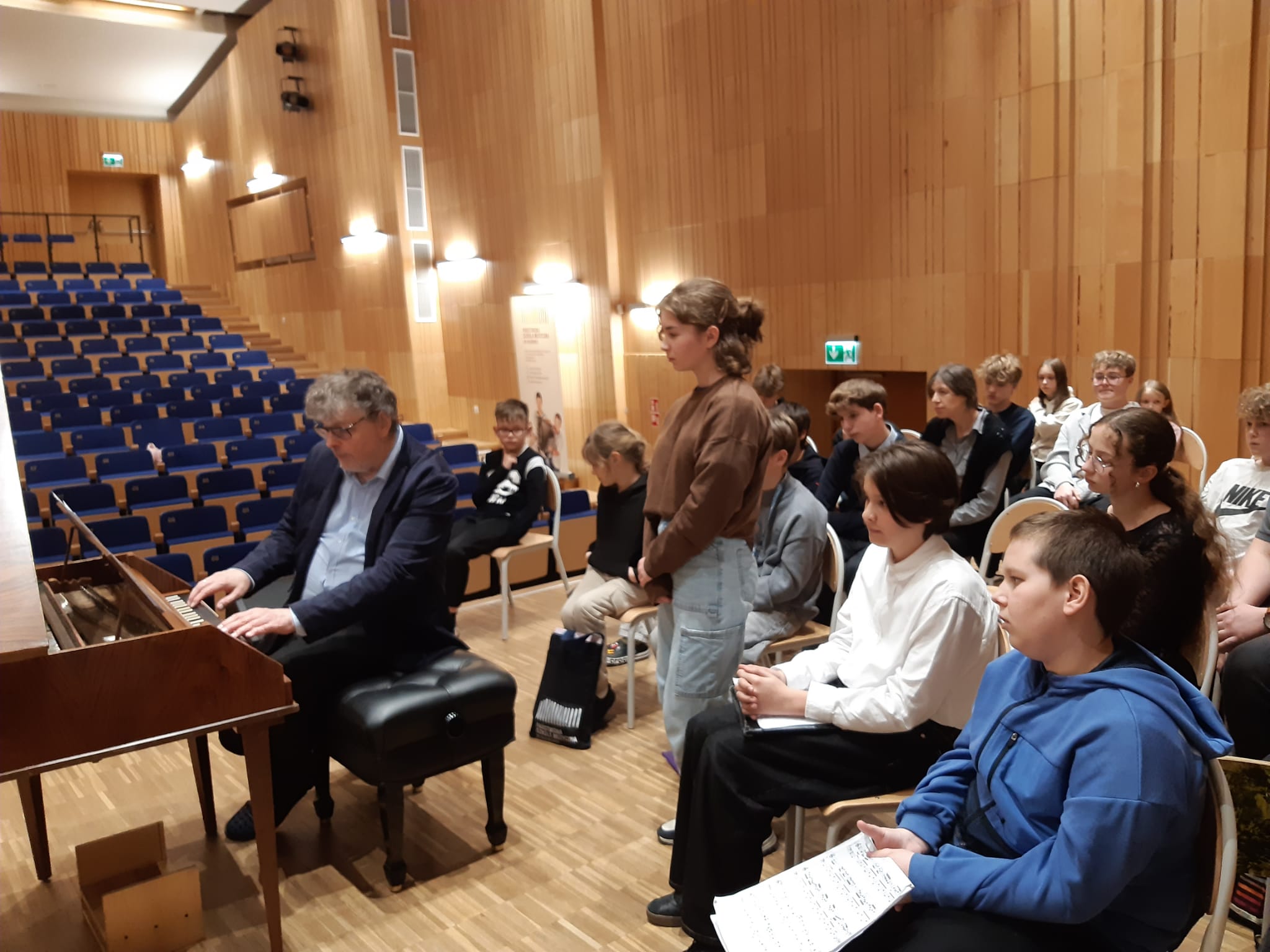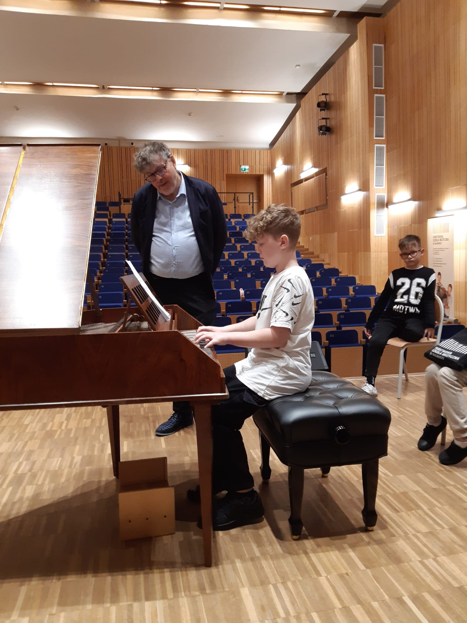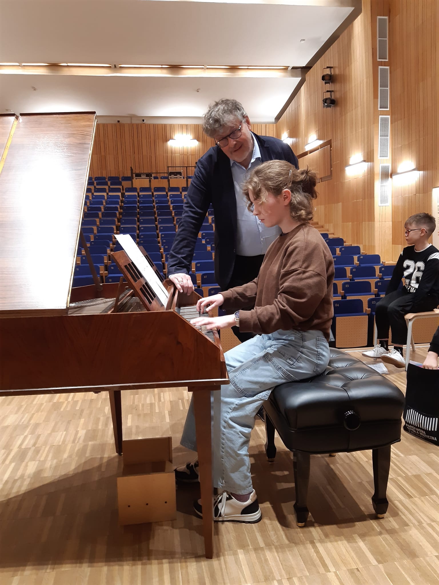 Uczniowie mieli okazję zobaczyć instrument i jego mechanizm działania "od środka" - Profesor odkręcił i pokazał wnętrze mechanizmu młoteczkowego fortepianu, a następnie poprowadził na tym instrumencie warsztaty. Pianiści i organiści, a także uczniowie fortepianu dodatkowego mogli zagrać na nim aktualnie przerabiane utwory z okresu baroku i klasycyzmu (takie, które mieściły się w skali FF-f3)