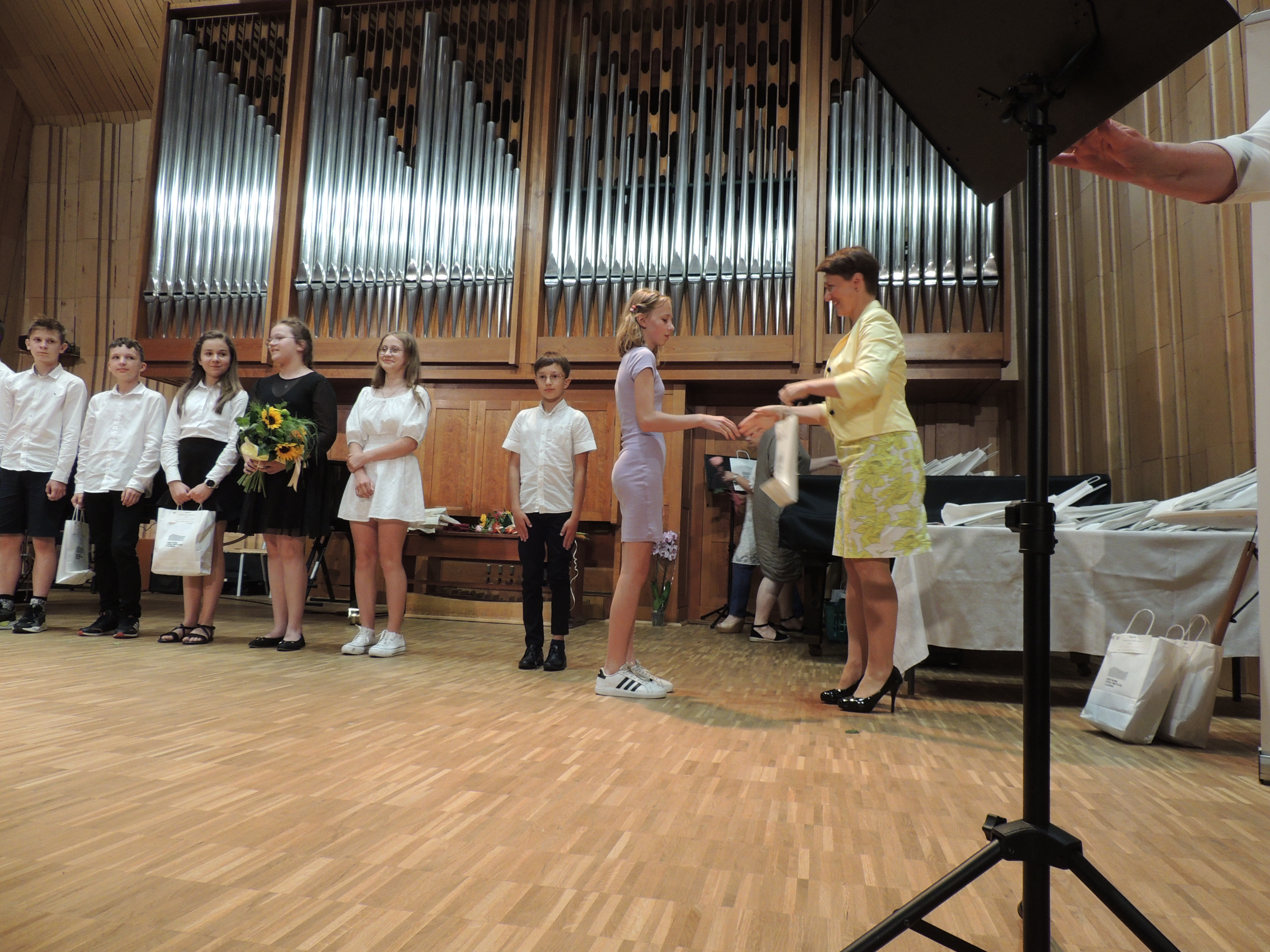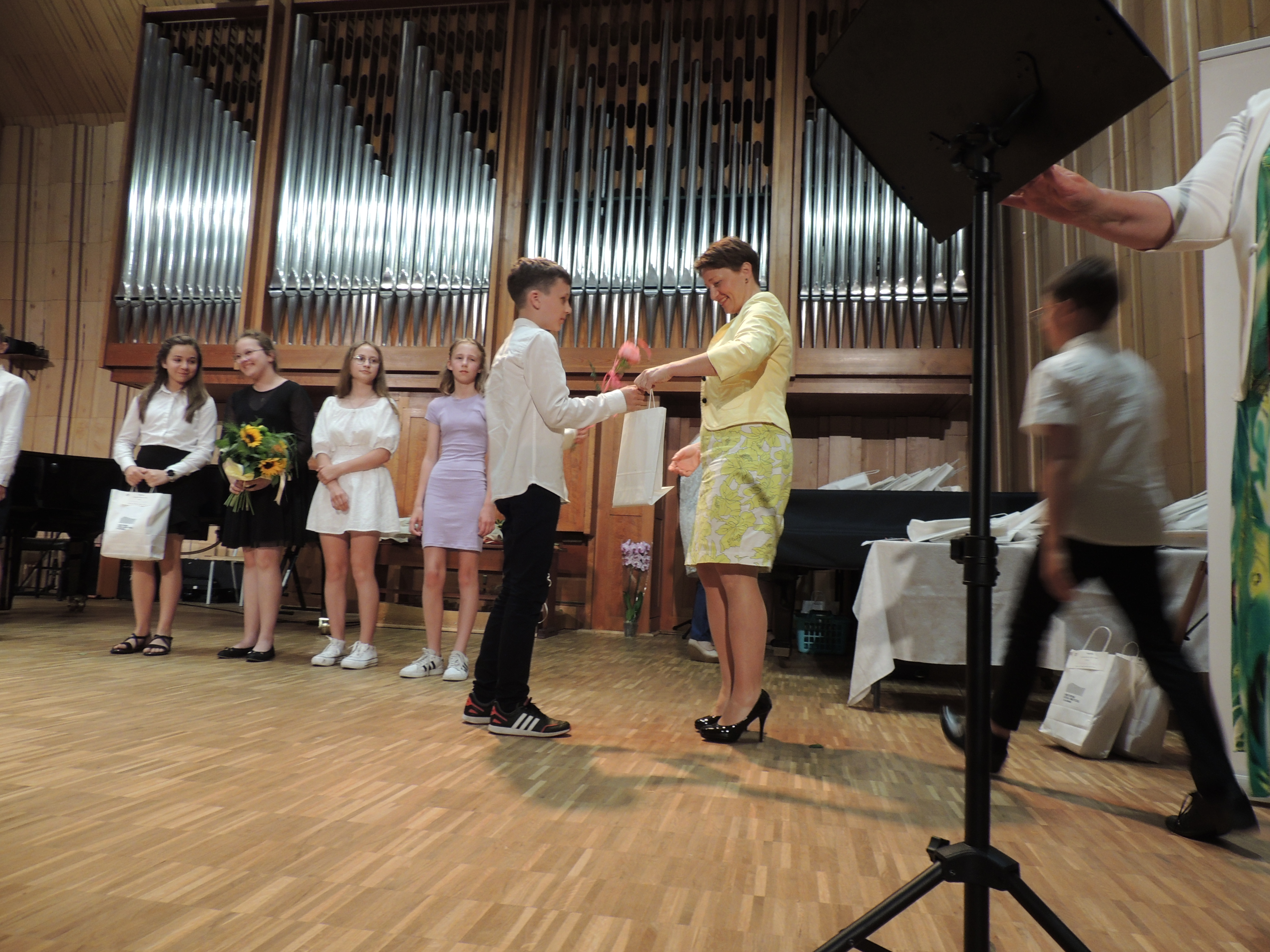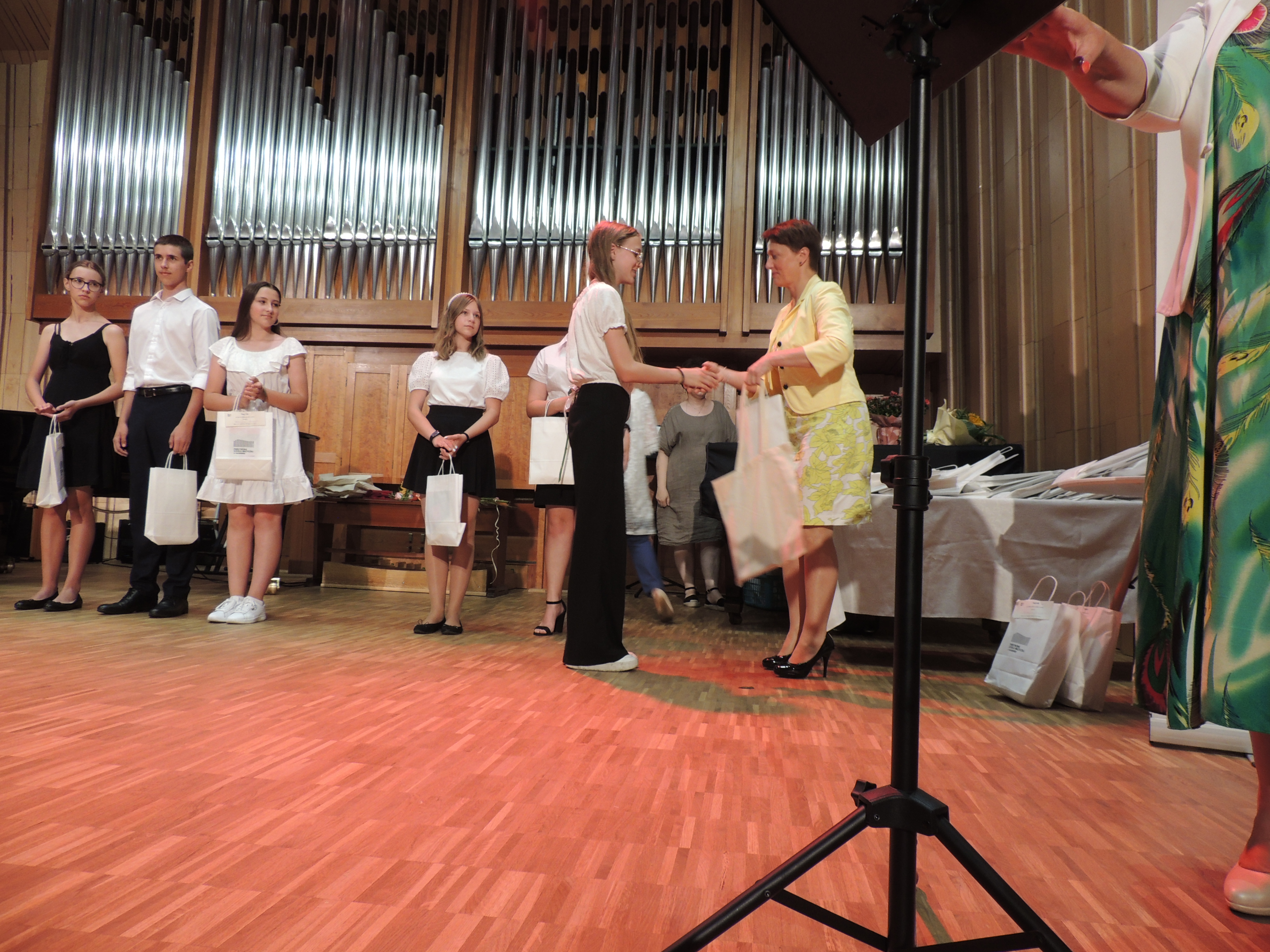 Świadectwa otrzymali uczniowie w klasach, z rąk swoich nauczycieli instrumentu, tuż po uroczystym zakończeniu na sali koncertowej.