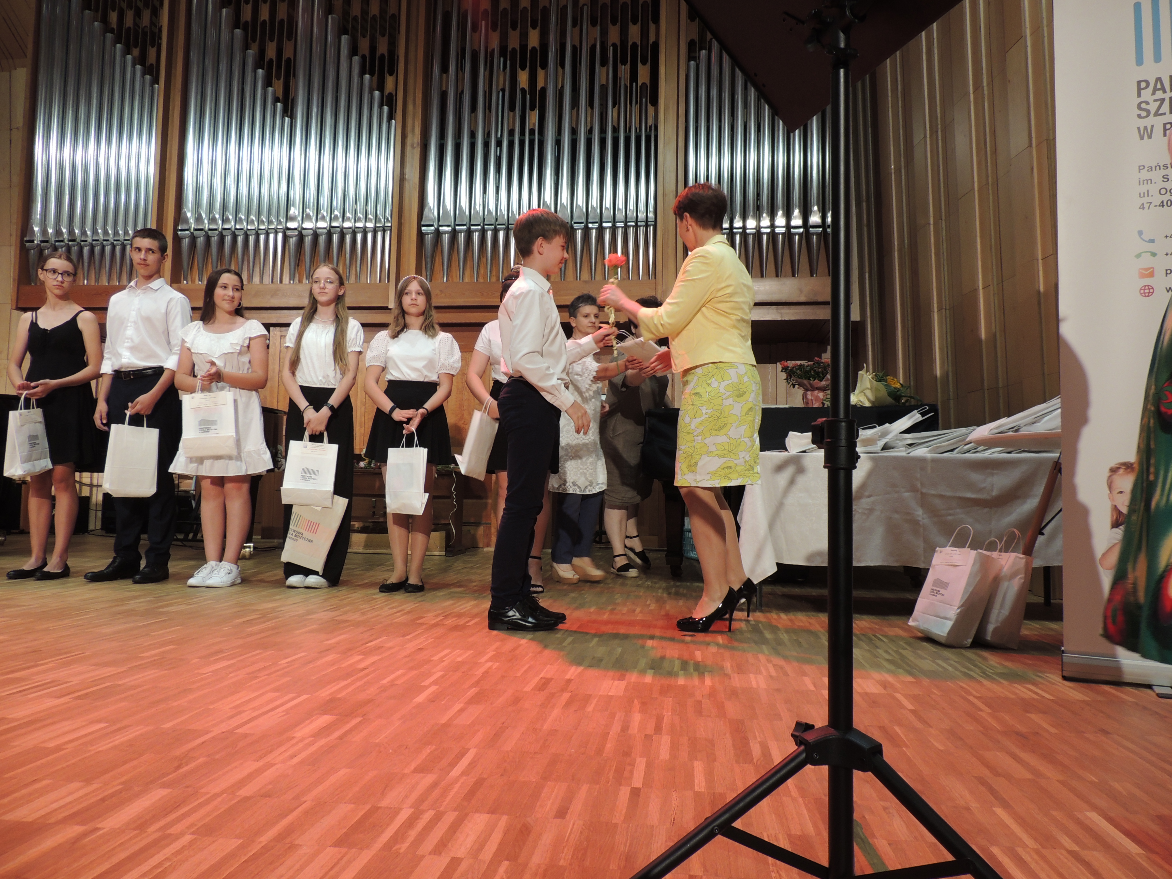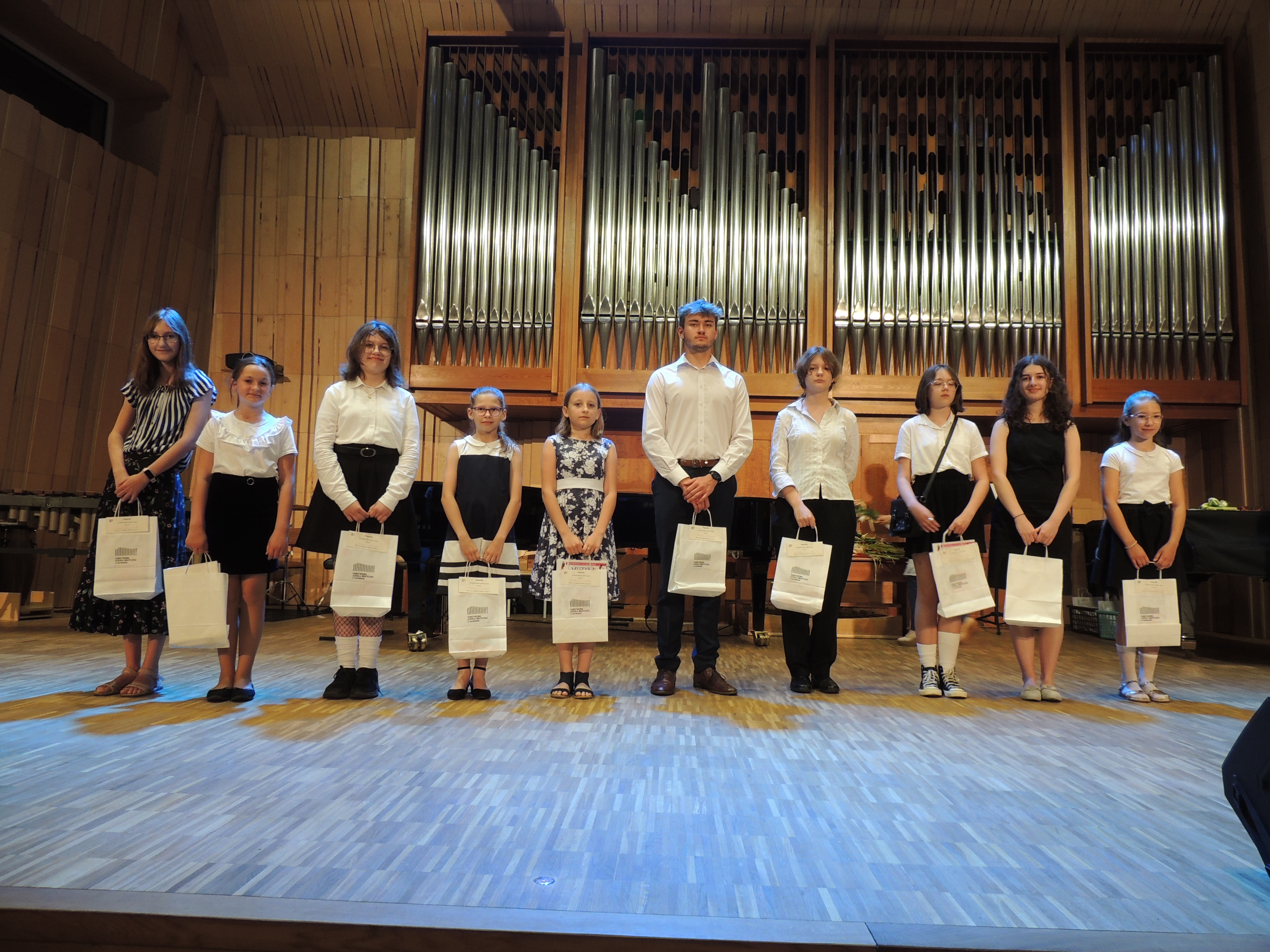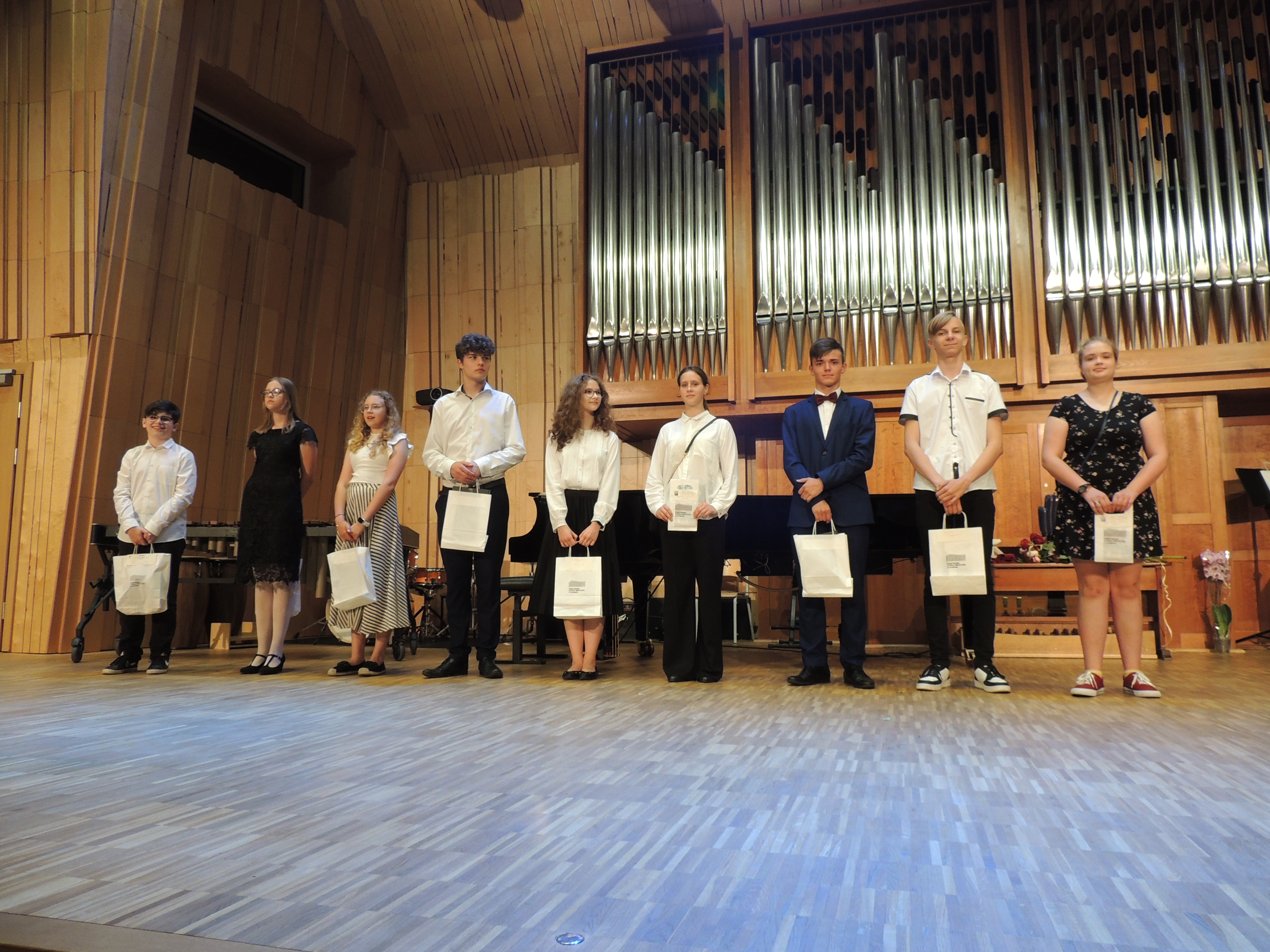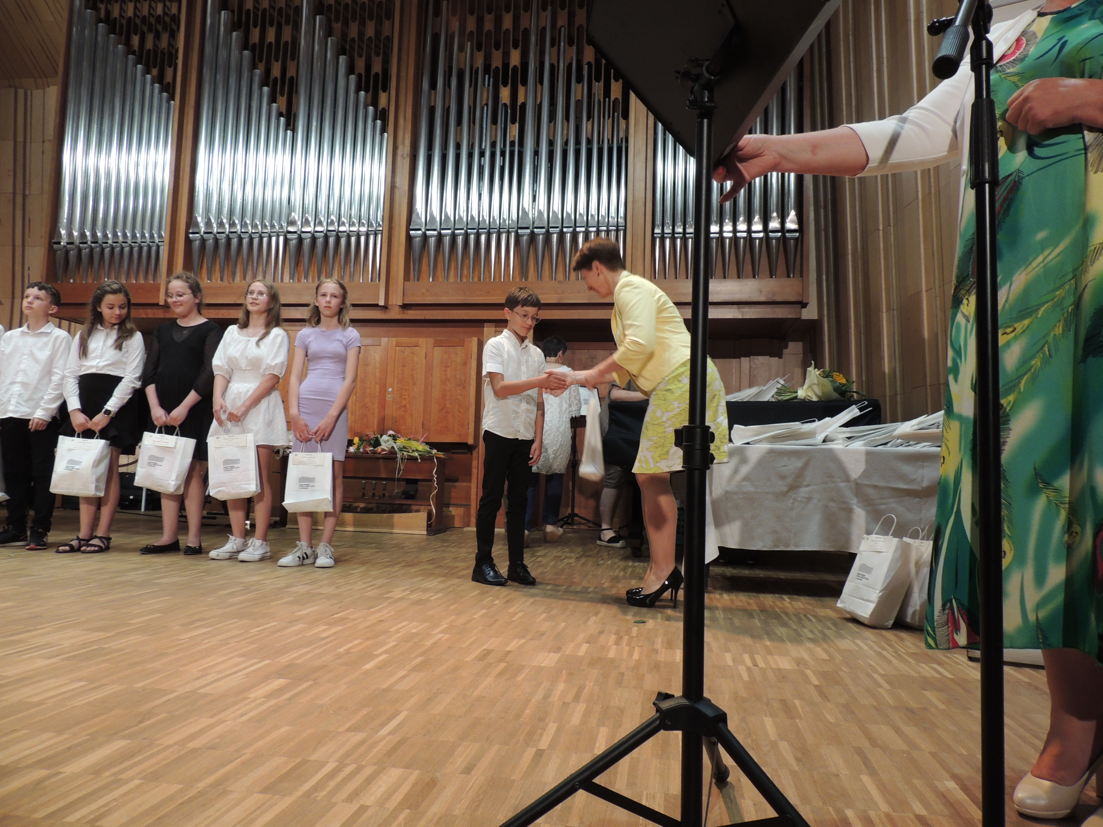 Świadectwa otrzymali uczniowie w klasach, z rąk swoich nauczycieli instrumentu, tuż po uroczystym zakończeniu na sali koncertowej.