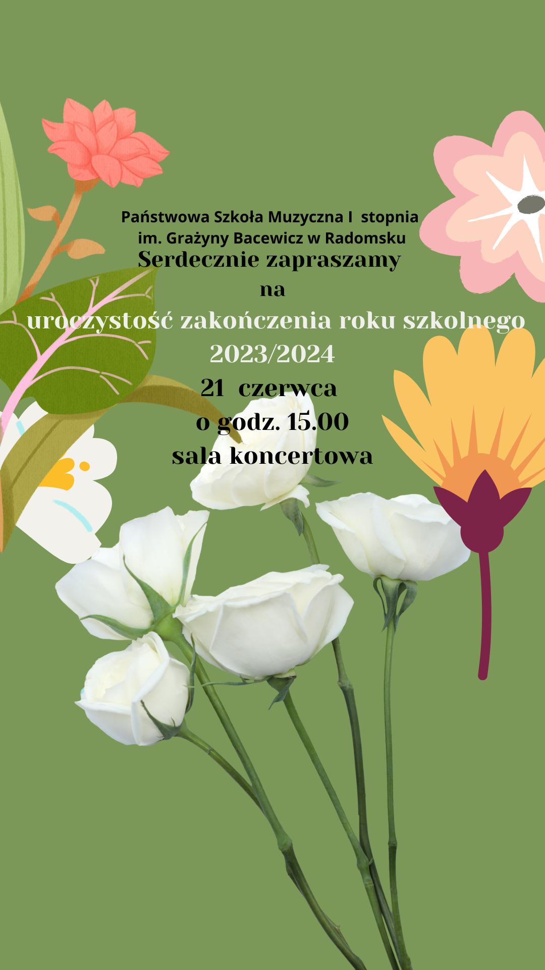 Zapraszamy serdecznie na uroczyste zakończenie roku szkolnego 2023/2024 już 21 czerwca, o godz. 15.00 w sali koncertowej naszej szkoły.