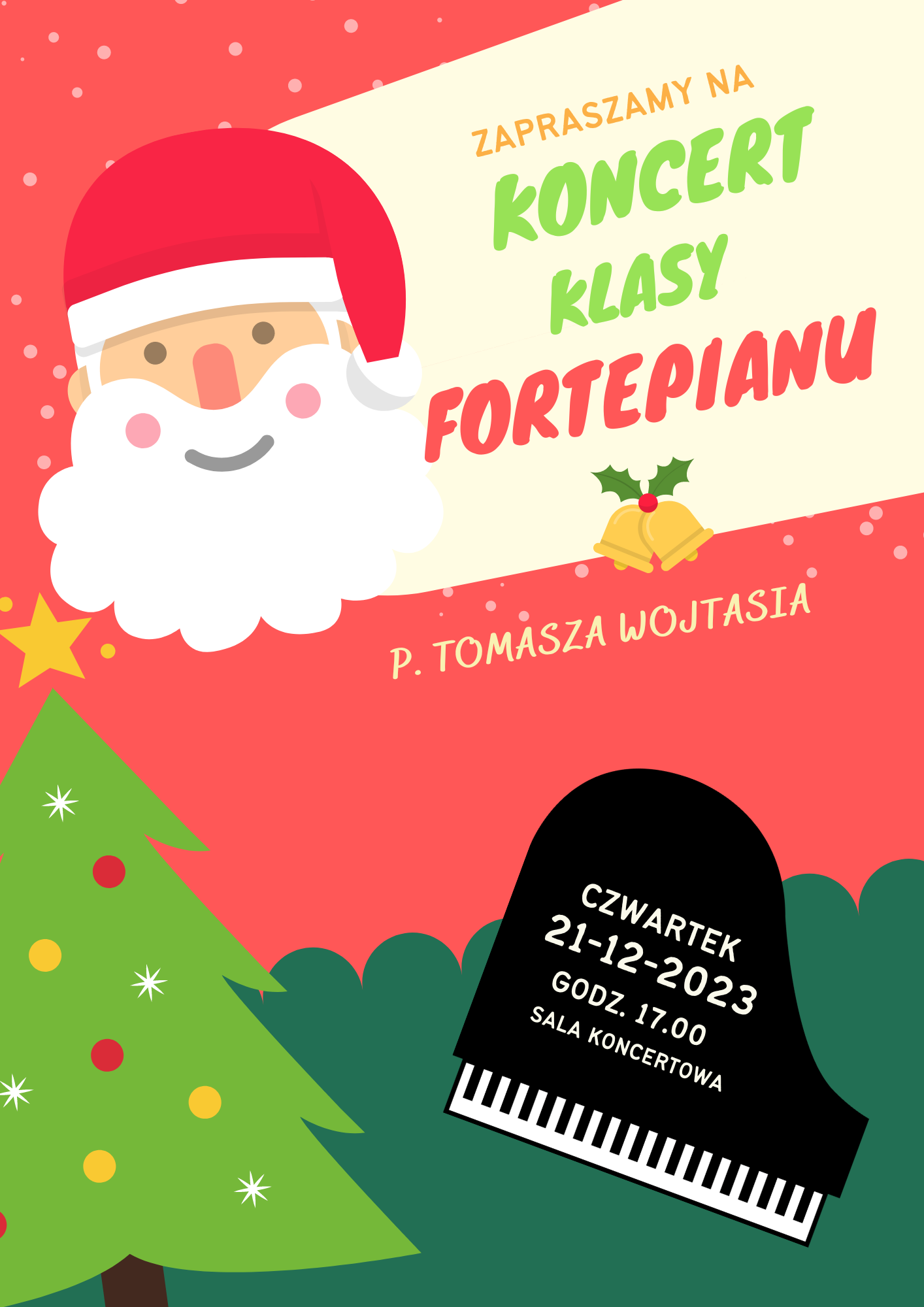 W dniu 21 grudnia o godzinie 17 w sali koncertowej im. Zygmunta Pietrzaka odbędzie się świąteczny popis klasy fortepianu p. Tomasza Wojtasia. Serdeczenie zapraszamy!!!