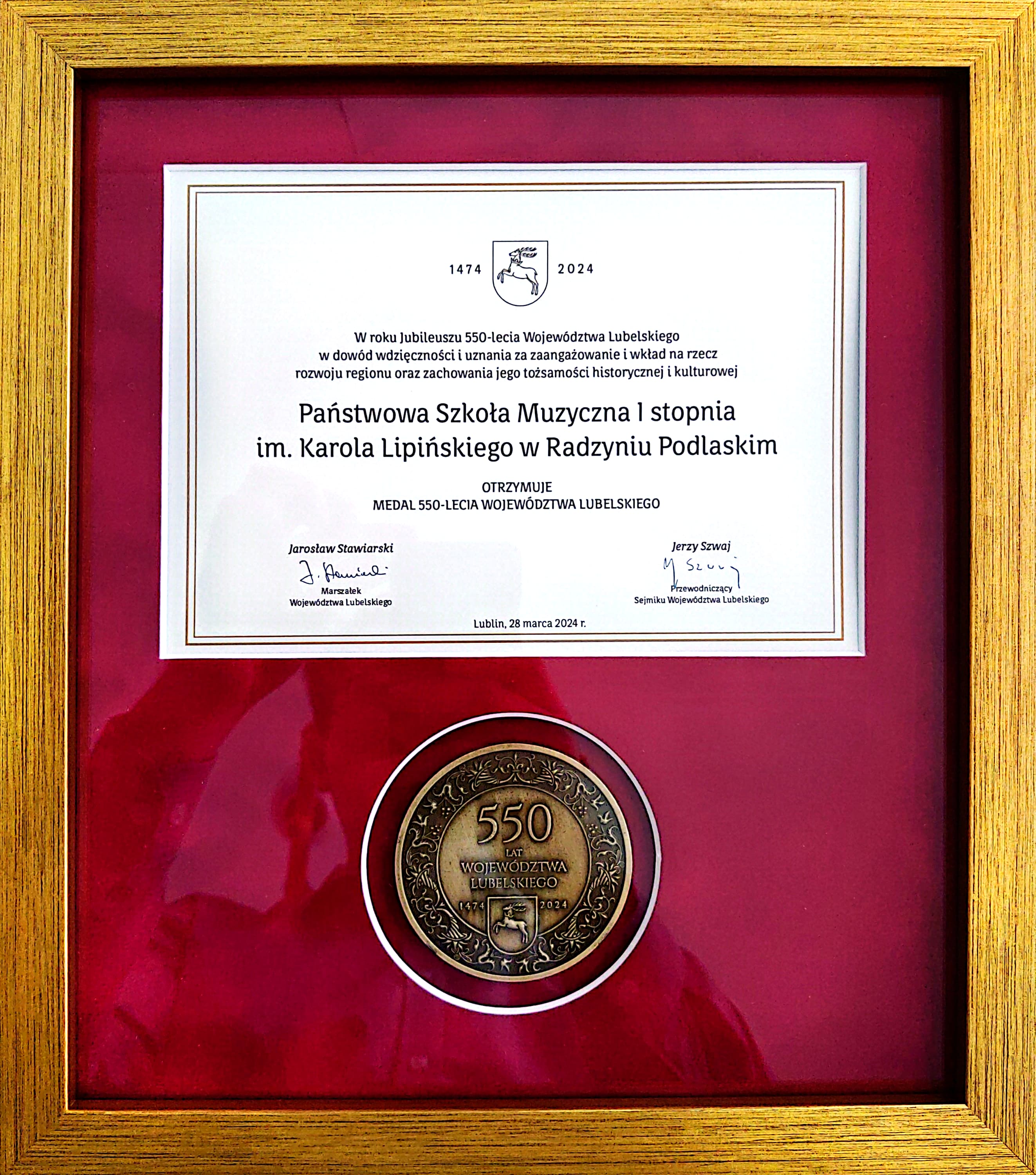 Miło Nam poinformować, że Nasza szkoła otrzymała medal z okazji 550-lecia Województwa Lubelskiego w dowód wdzięcznośći i uznania za zaangażowanie i wkład na rzecz rozwoju regionu oraz zachowaniu jego tożsamości historycznej i kulturowej.