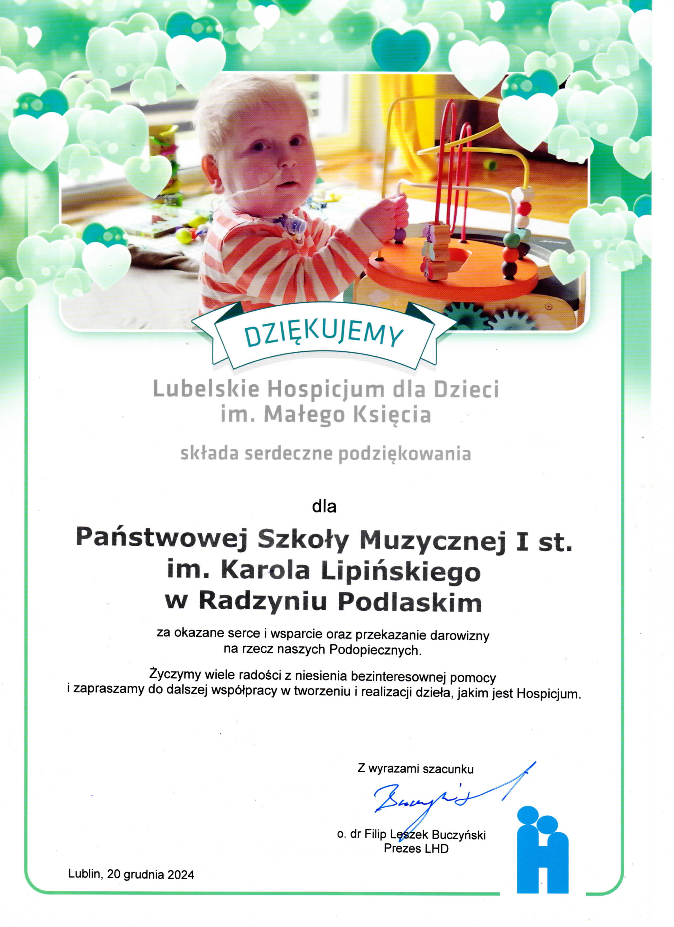 Podziękowanie od Lubelskiego Hospicjum im. Małego Księcia