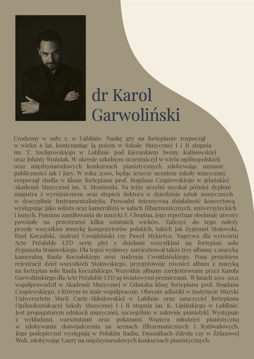 Warsztaty pianistyczne z dr. Karolem Garwolińskim oraz koncert - 21.11.2025