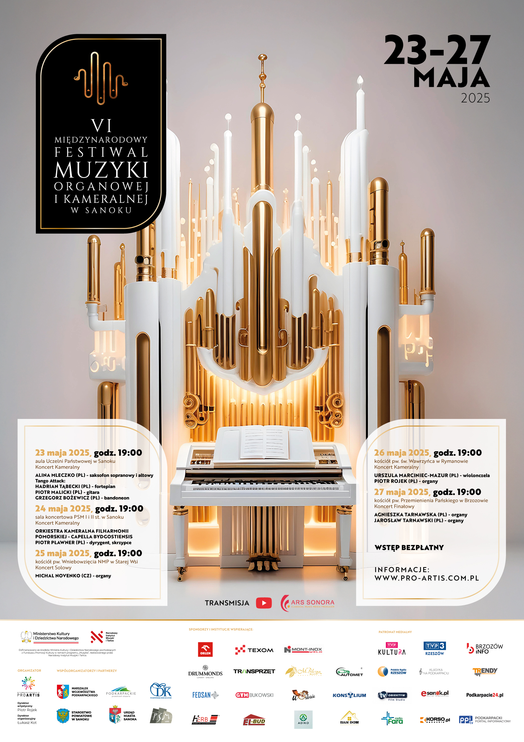 W dniach 23–27 maja 2025 roku Podkarpacie znów stanie się miejscem spotkania znakomitych artystów, młodych talentów i wiernej publiczności podczas VI Międzynarodowego Festiwalu Muzyki Organowej i Kameralnej, który odbędzie się w Sanoku, Starej Wsi, Rymanowie i Brzozowie. Wydarzeniu towarzyszyć będzie V Ogólnopolski Konkurs Młodych Organistów, którego przesłuchania będą otwarte dla publiczności.