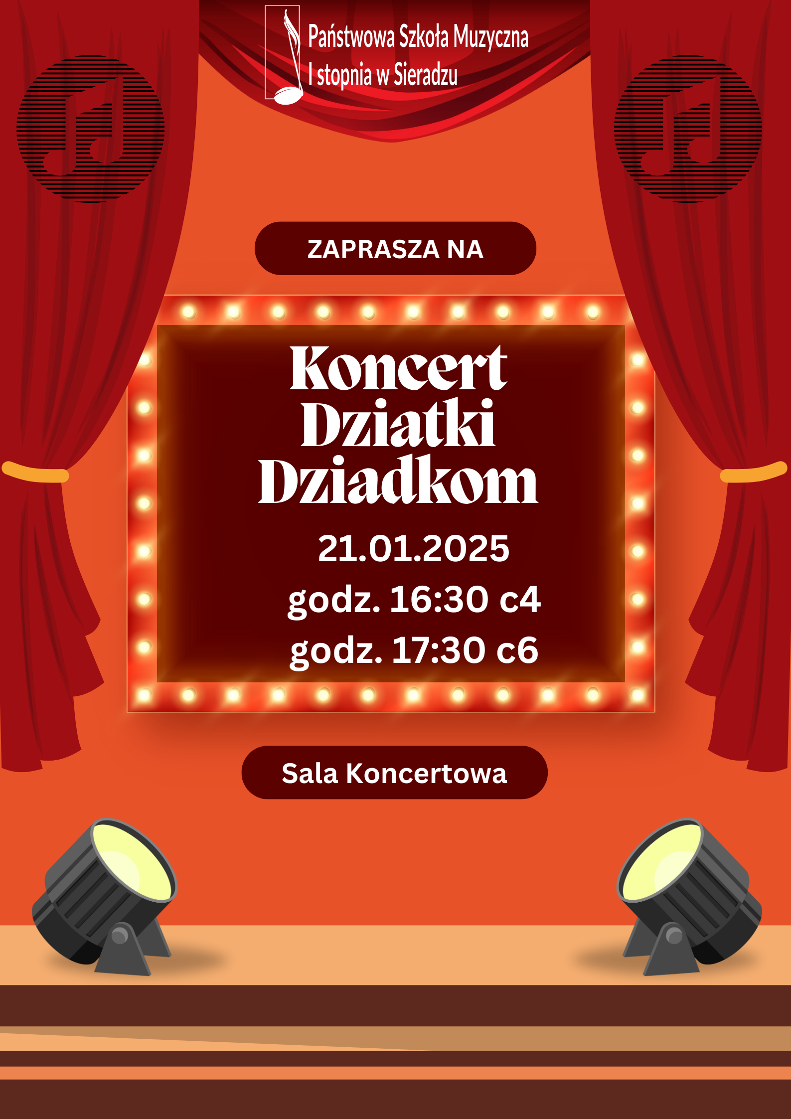 Serdecznie zapraszamy na koncert Dziatki Dziadkom w wykonaniu pierwszoklasistów. Koncert odbędzie się 21.01.2025r. w Sali Koncertowej naszej szkoły.