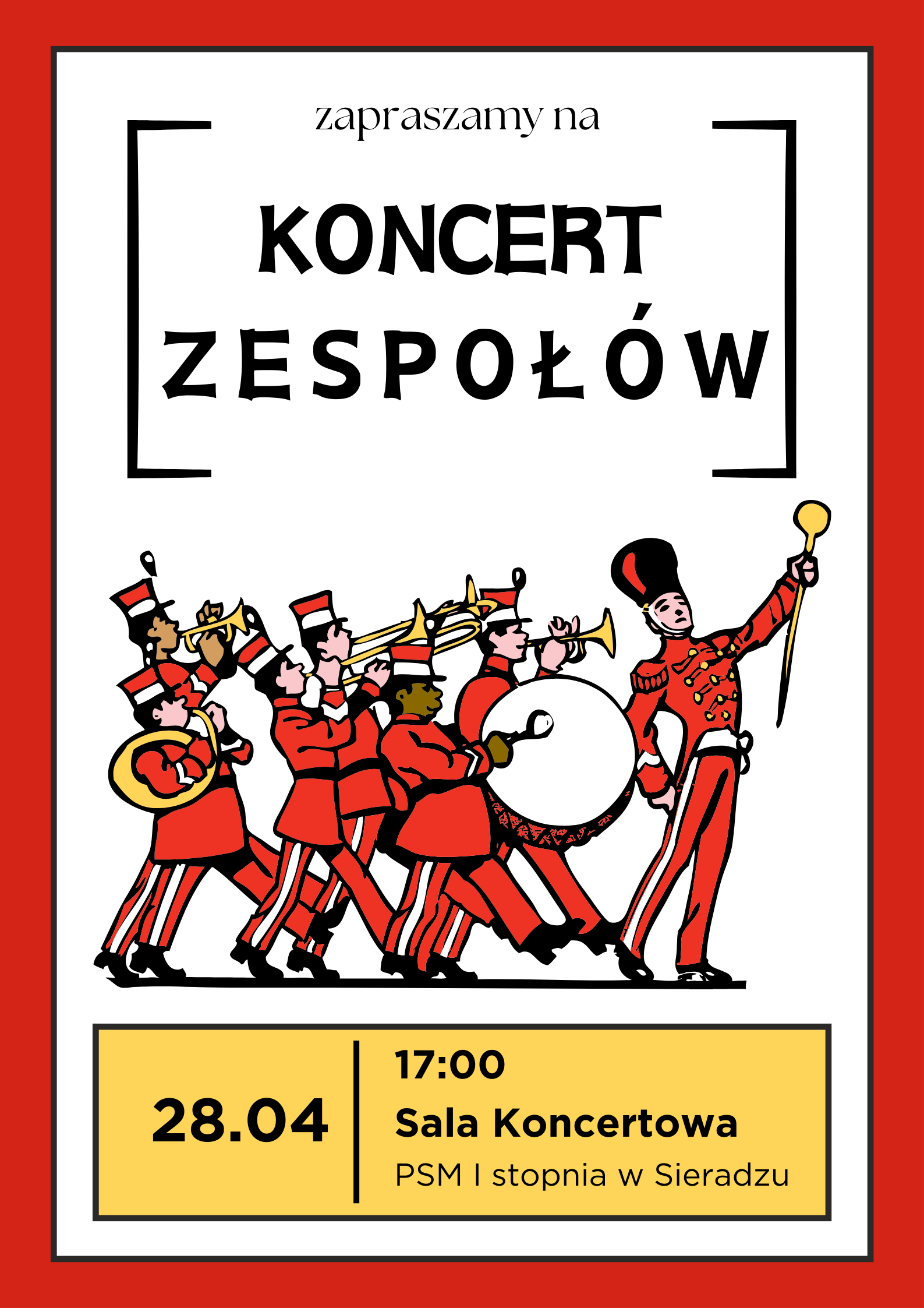 Już 28 kwietnia o godzinie 17:00 w Sali Koncertowej PSM I stopnia w Sieradzu odbędzie się niezywkłe wydarzenie muzyczne- Koncert zespołów. Na scenie zaprezentują się młodzi artyści, którzy połączą swoje siły, by wspólnie stworzyć niezapomniane muzyczne przeżycia. W programie różnorodne utwory, barwne aranżacje i mnóstwo pozytywnej energii!