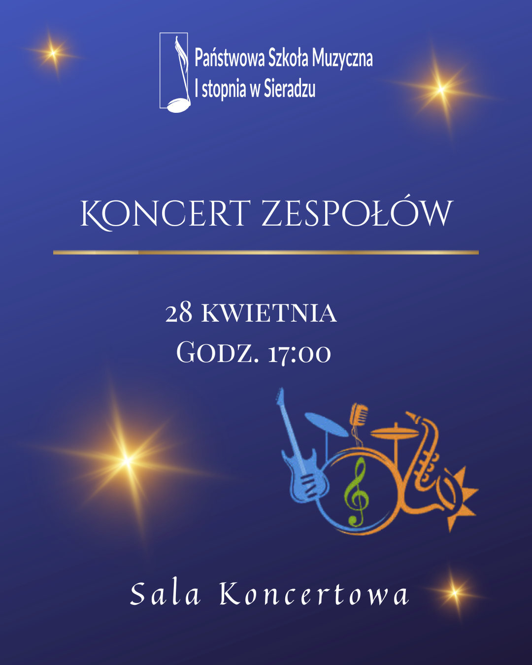 Państwowa Szkoła Muzyczna I stopnia w Sieradzu serdecznie zaprasza na Koncert zespołów w wykonaniu uczniów szkoły.