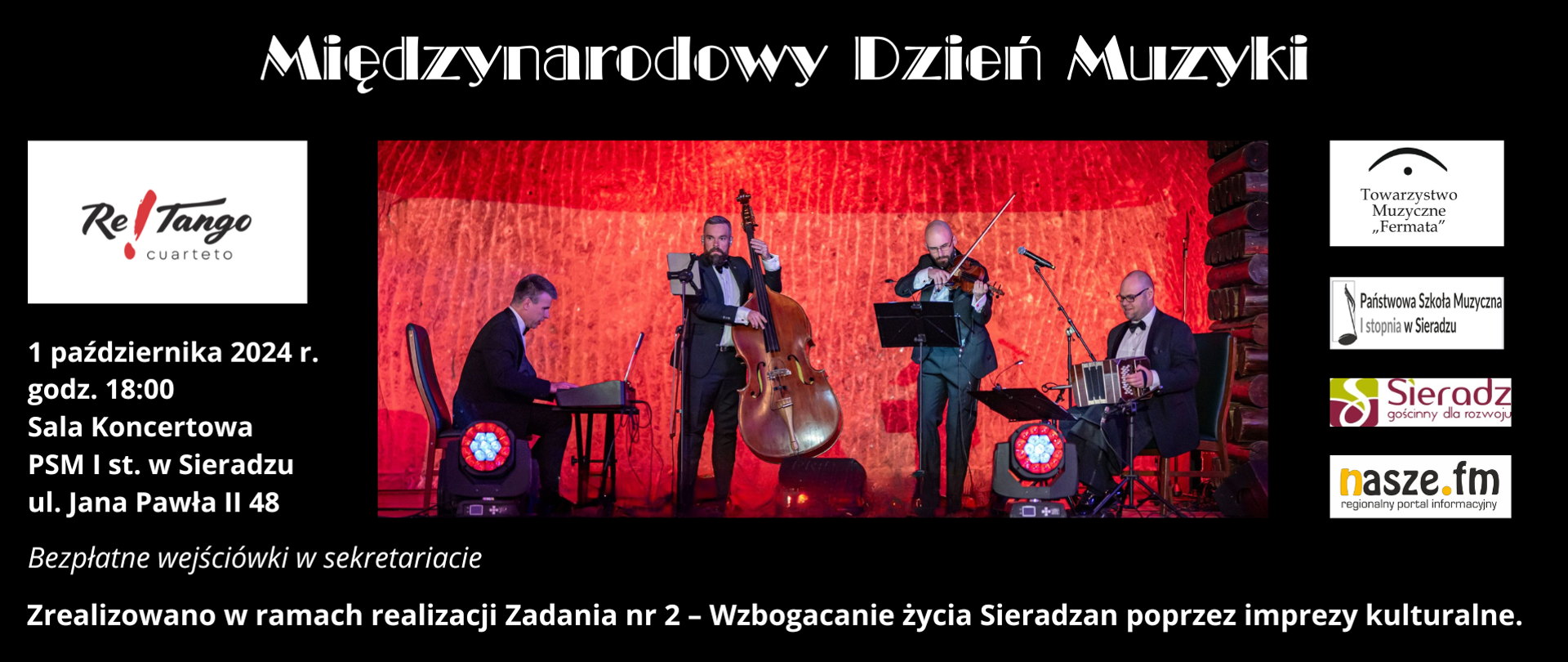 Koncert zorganizowany przez Towarzystwo Muzyczne FERMATA i PSM I st. w Sieradzu odbędzie się w ramach realizacji Zadania nr 2 – Wzbogacanie życia Sieradzan poprzez imprezy kulturalne, nad którym medialny patronat objęła rozgłośnia radiowa „Nasze Radio”.