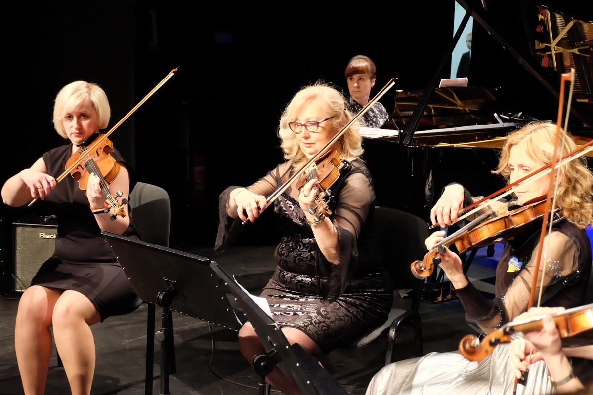 Koncert rozpoczął się od hymnu Ukrainy w wykonaniu zespołu smyczkowego, w którym grała ukraińska skrzypaczka. W wykonaniu Oleny Habalczenko zabrzmiał również utwór znakomitego ukraińskiego kompozytora, Myroslava Skorika. Olenie akompaniowała nauczycielka szkoły muzycznej – Magdalena Miller. Ukraińskich akcentów było o wiele więcej. Publiczność mogła wysłuchać popularnych melodii ukraińskich oraz innych dzieł kompozytorów zza naszej wschodniej granicy. Nie zabrakło również muzyki Fryderyka Chopina. Muzycy zagrali również utwory ze ścieżek dźwiękowych różnych filmów, a także popularne piosenki.