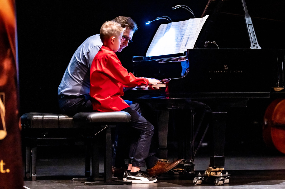 XVII Koncert Muzyki Filmowej przeszedł wczoraj do historii. Wystąpiło w nim 103 wykonawców - uczniów, absolwentów, nauczycieli i gości, którzy zagrali dwa koncerty, jednego dnia, dla publiczności, która po brzegi wypełniła salę Teatru Miejskiego w Sieradzu. Zabrzmiała muzyka z 17 filmów. Wystapiły dwie orkiestry - smyczkowa i dęta, chór szkolny, kwintet akordeonowy, dwa zespoły nauczycielskie, grupa rytmiczna, soliści i wokalistki. Po raz kolejny muzyka filmowa zintegrowała pokolenia naszych wykonawców, którzy z pasją zinterpretowali piękne tematy filmowe. Koncert wyreżyserowała i poprowadziła Izabela Rudzka-Kosieradzka, przy wsparciu Rady Rodziców oraz Sieradzkiego Centrum Kultury. Autorka zdjęć: Kamila Rosińska Fotografia.