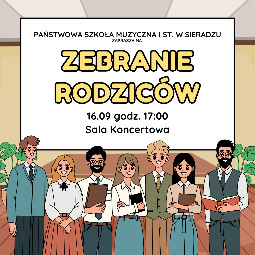 Serdecznie zapraszamy na zebranie rodziców, które odbędzie się 16 września 2025 roku w Sali Koncertowej PSM I st. w Sieradzu.