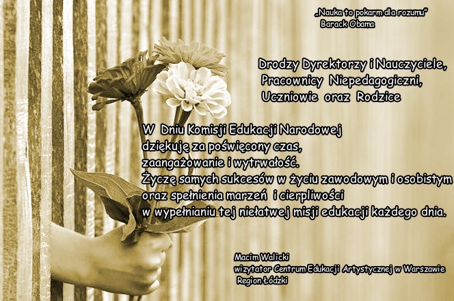 W Dniu Komisji Edukacji Narodowej pragnę złożyć najserdeczniejsze życzenia nauczycielom i pracownikom niepedagogicznym.