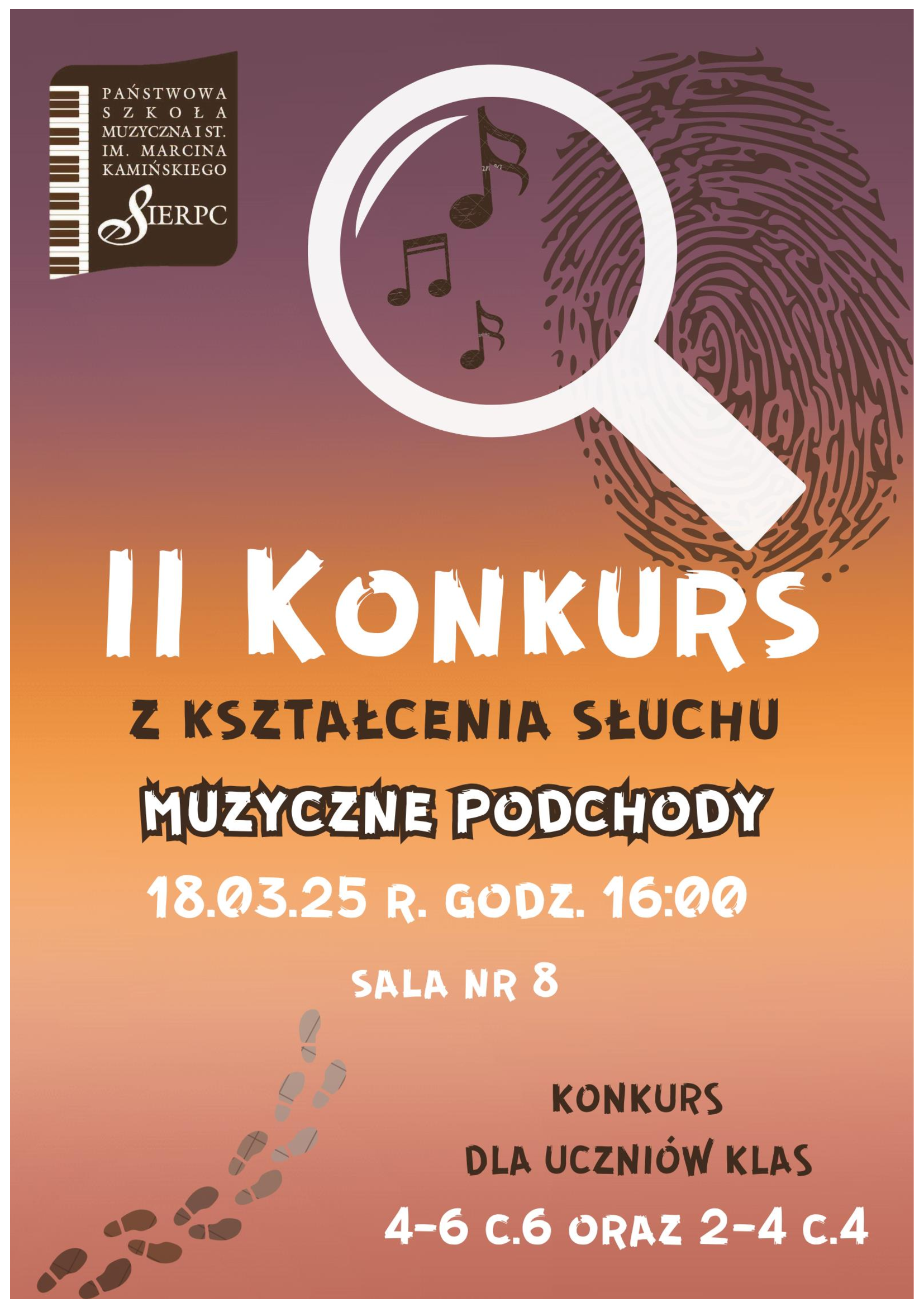 Zchęcamy uczniów klas 2-4 c. 4-letniego oraz uczniów klas 4-6 c. 6-letniego do wzięcia udziału w II Konkursie z kształcenia słuchu "Muzyczne podchody".