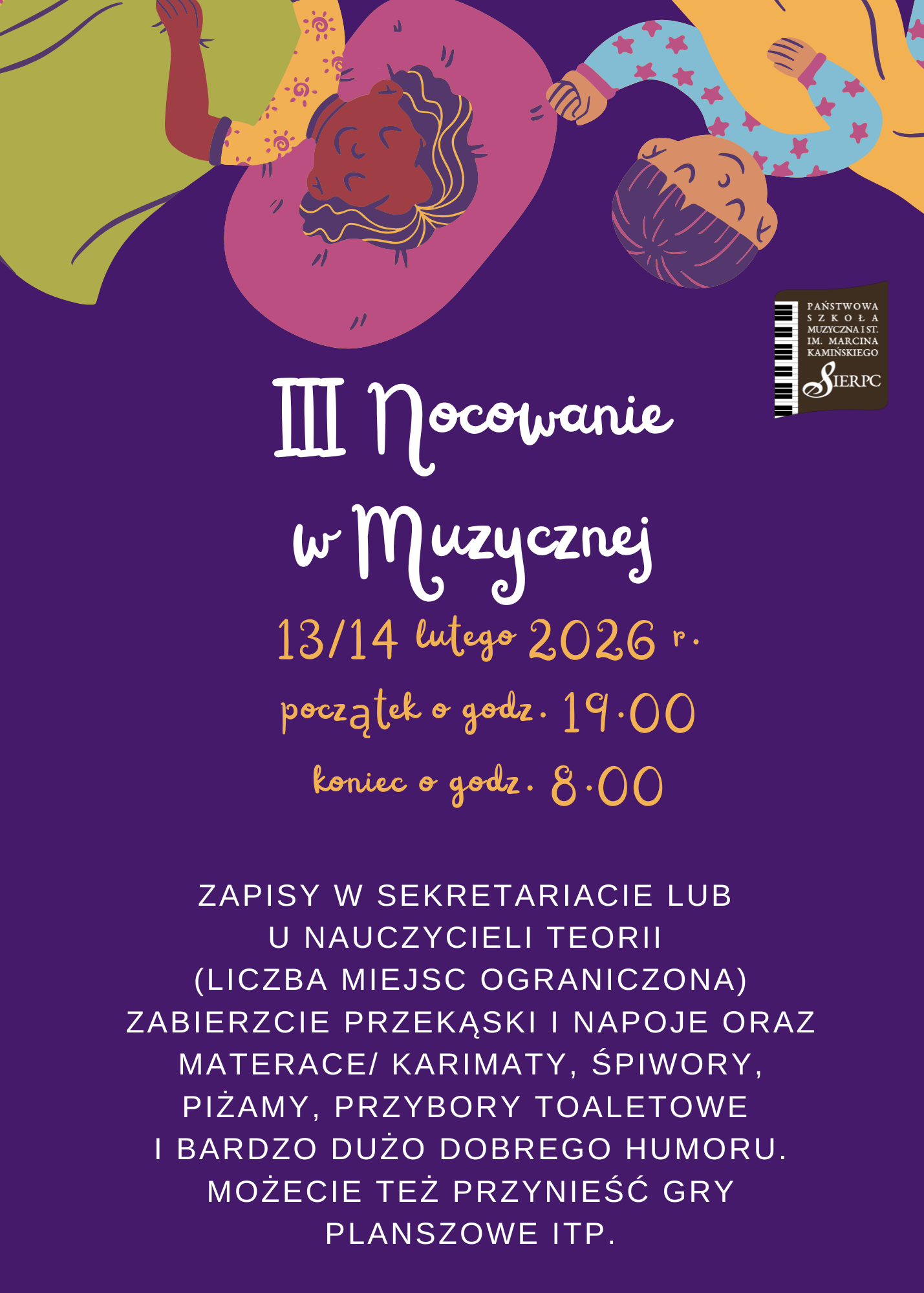 Zapraszamy uczniów do Nocowania w Muzycznej - 13/14.02.2026 r.