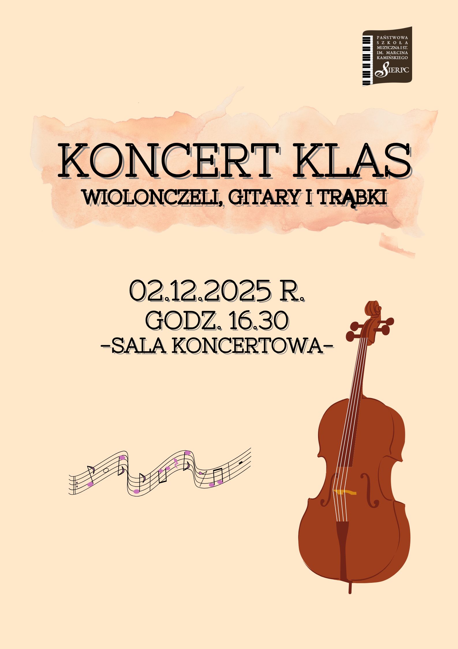 Koncert klas wiolonczeli, gitary i trąbki 27.11.2025 Dnia 02.12.2025 r. zapraszamy na Koncert klas wiolonczeli, gitary i trąbki. Zdjęcia (1) Pokaż zdjęcie 1 z galerii.