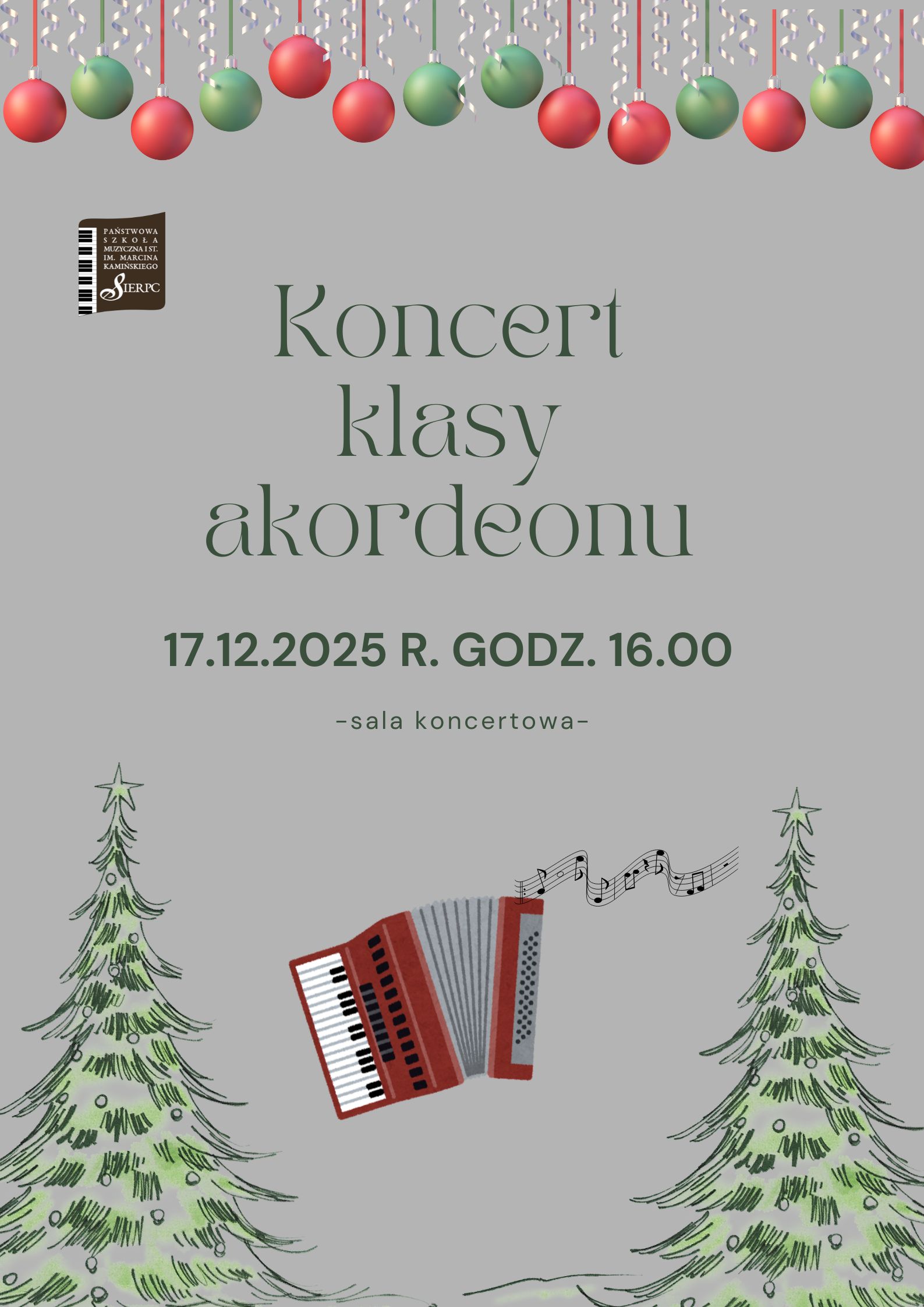 Zapraszamy na Koncert klasy akordeonu p. Grzegorza Domańskiego 17.12.2025 r. o godz. 16.00.