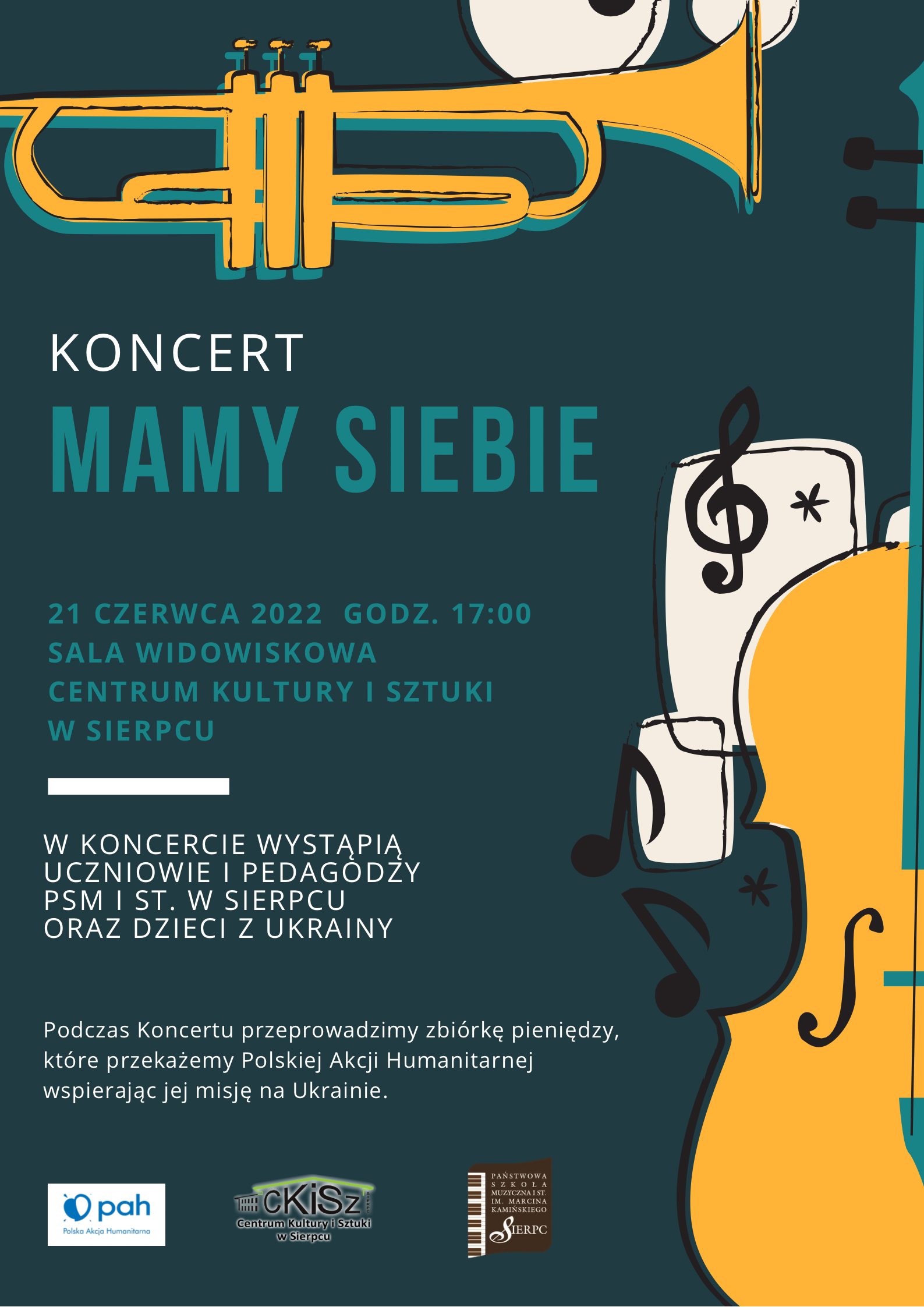 Serdecznie zapraszamy na Koncert Mamy Siebie, dnia 21.06.2022 r. o godzinie 17.00 w sali widowiskowej Centrum Kultury i Sztuki w Sierpcu.