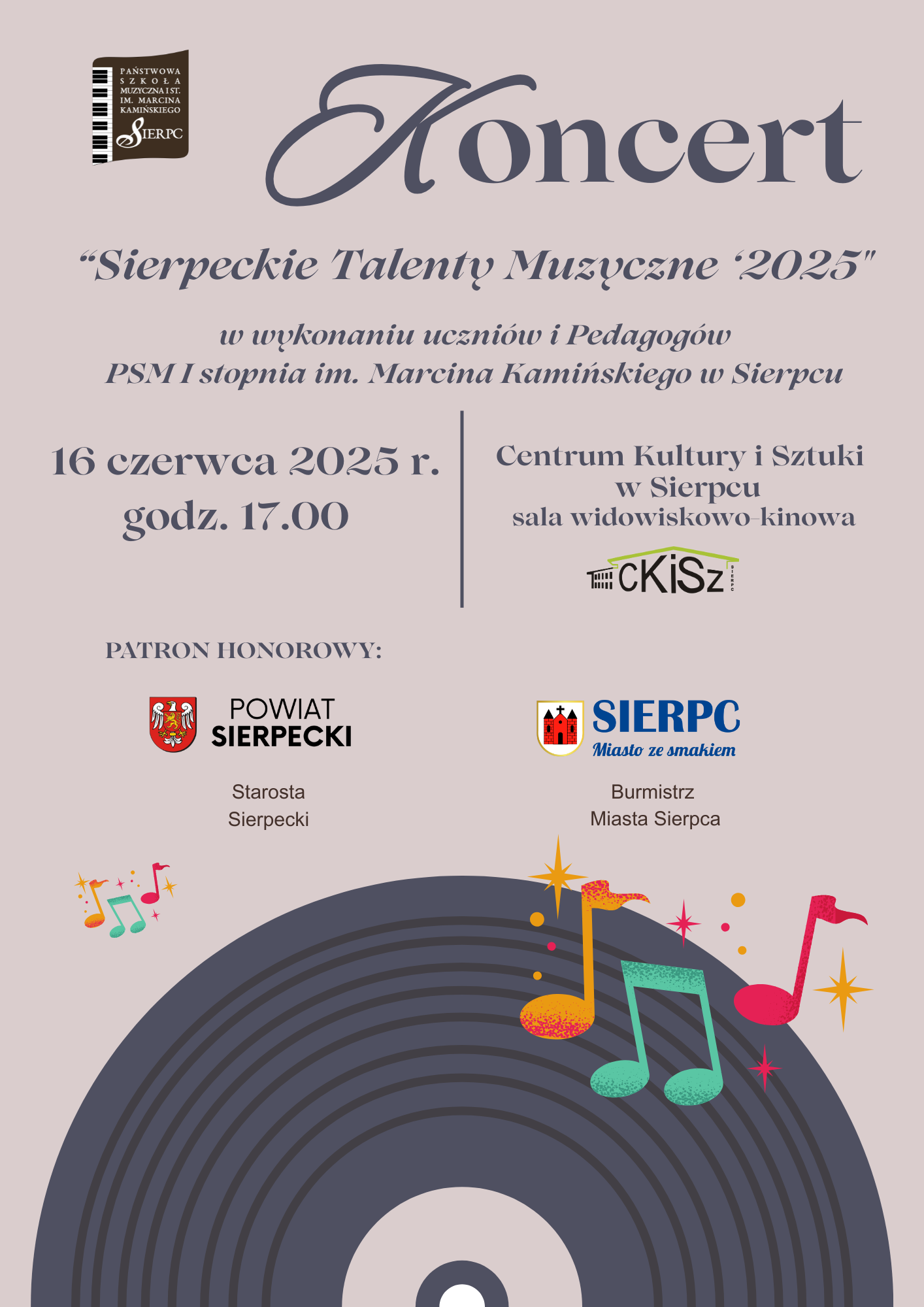 Honorowy patronat nad tegorocznym Koncertem zgodzili się objąć Starosta Sierpecki i Burmistrz Miasta Sierpca, a koncert przyjął znaczący tytuł „Sierpeckie Talenty Muzyczne’2025”.