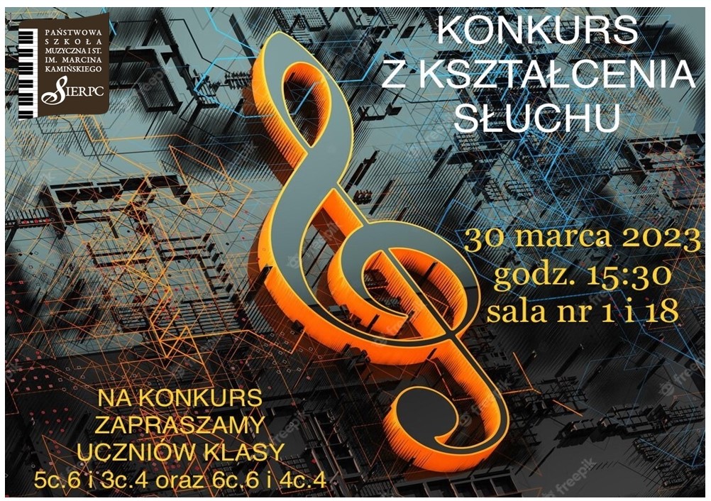 Zapraszamy na Konkurs z kształcenia słuchu uczniów klas: 5 c.6l, 3c.4l, 6 c.6l, oraz 4c.4l.