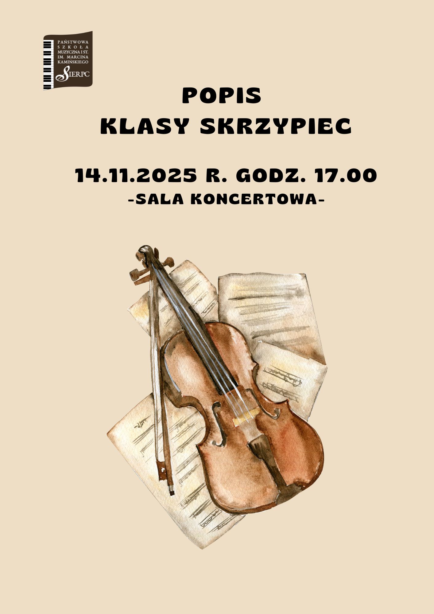 Popis klasy skrzypiec 12.11.2025 Dnia 14.11.2025 r. o godz. 17.00 zapraszamy na popis klasy skrzypiec. Zdjęcia (1) Pokaż zdjęcie 1 z galerii.